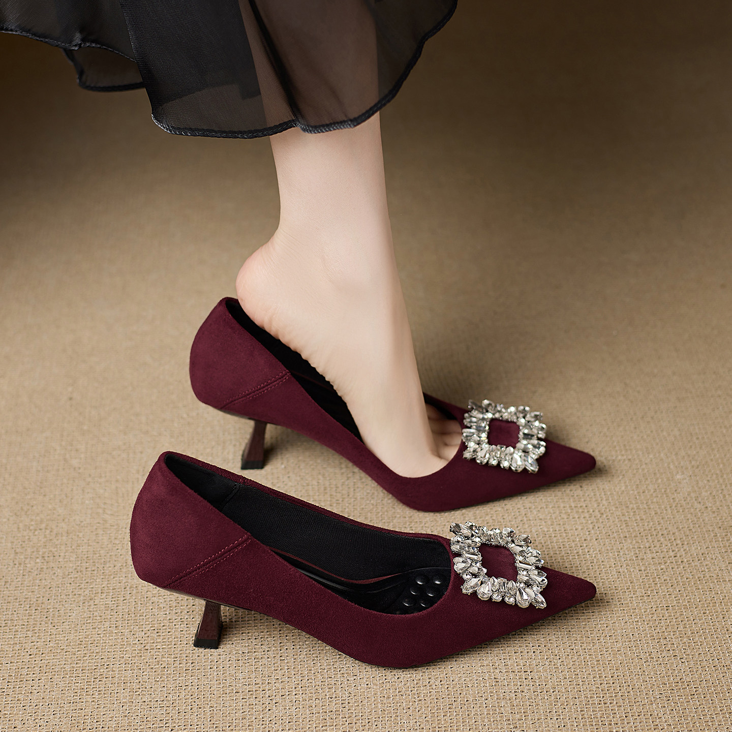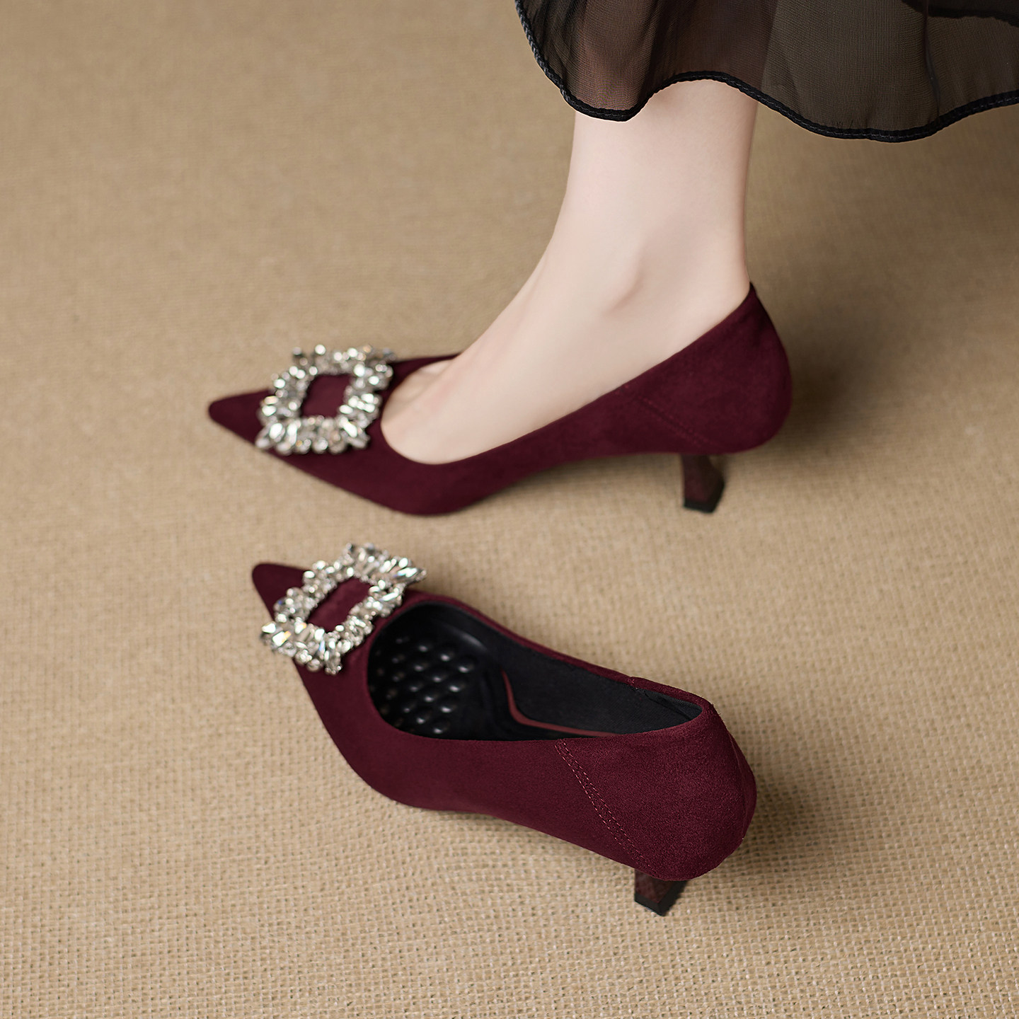 巨好看春法式气质尖头单鞋女水钻方扣细跟高跟鞋名媛通勤鞋不累脚
