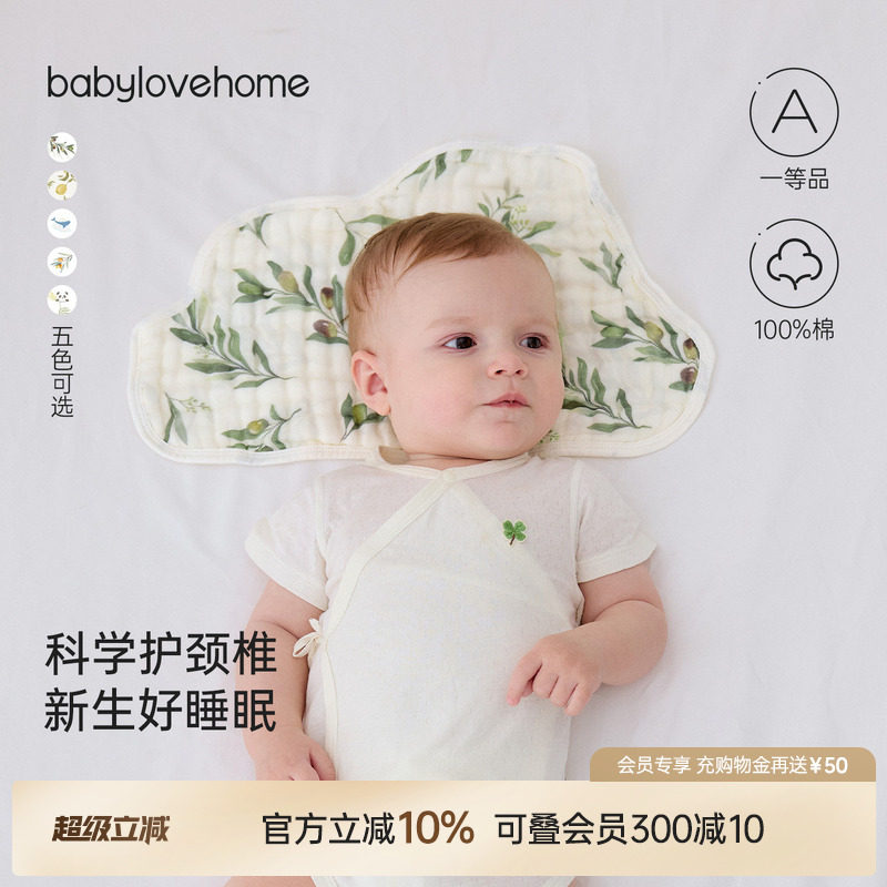 babylove婴儿枕头云片枕新生宝宝防吐奶枕巾吸汗透气纯棉纱布平枕