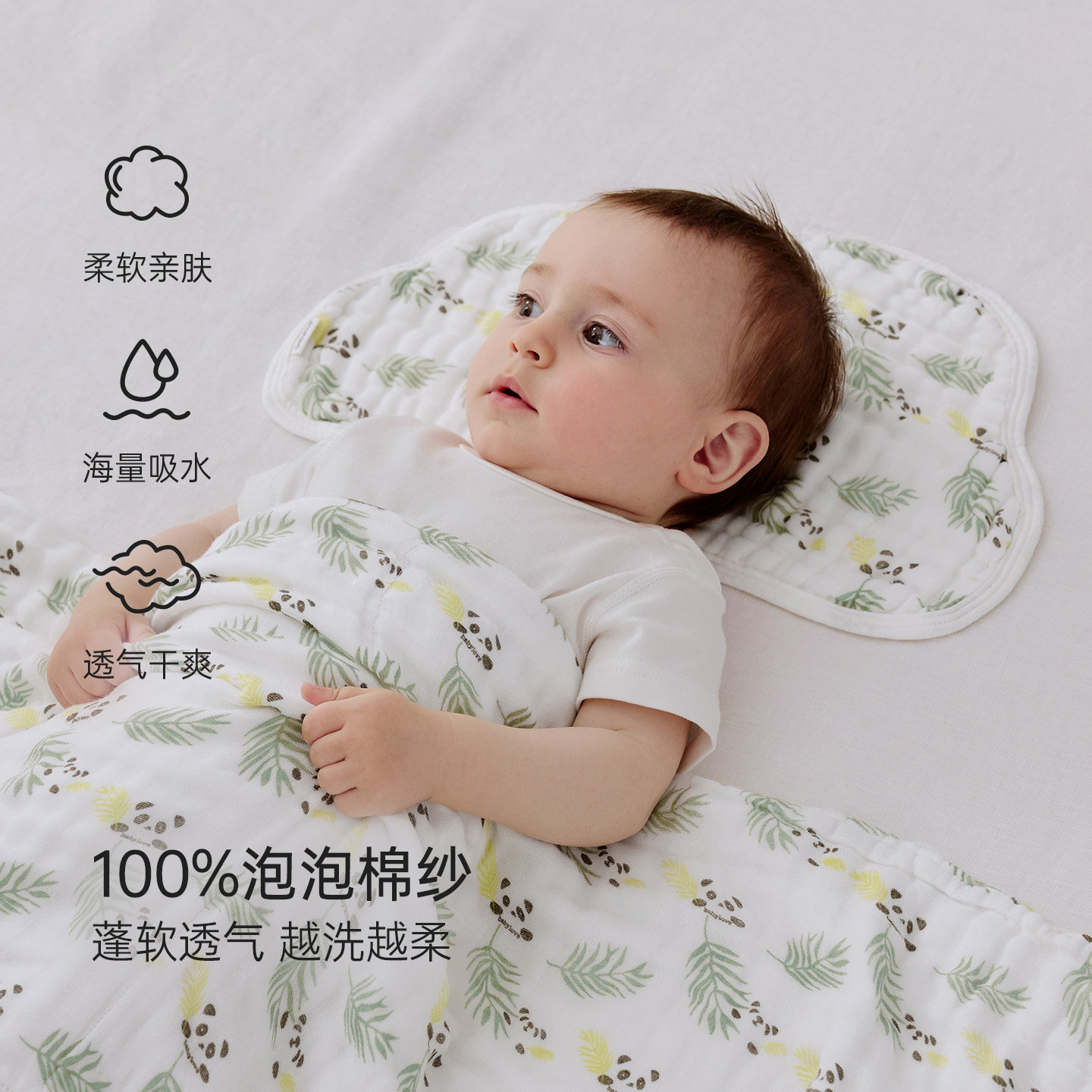 babycare新生儿云片枕头婴儿纱布透气吸汗宝宝枕头拍嗝巾0-3月