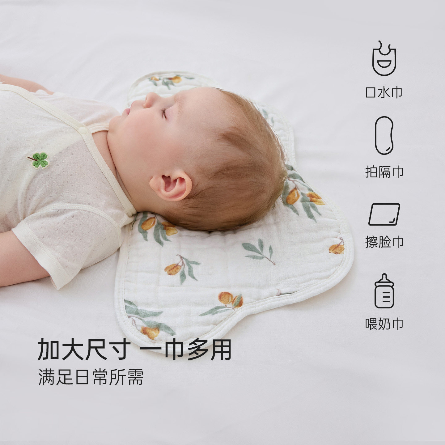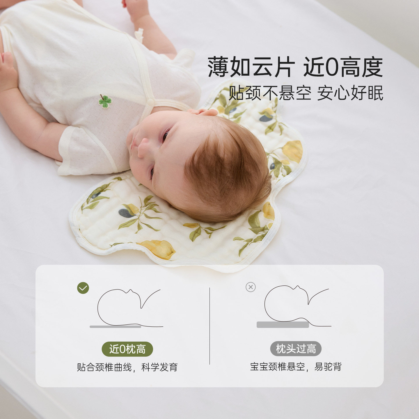 贝肽斯新生儿云片枕头婴儿纯棉纱透气吸汗宝宝0到6个月防吐奶枕巾