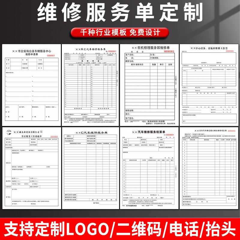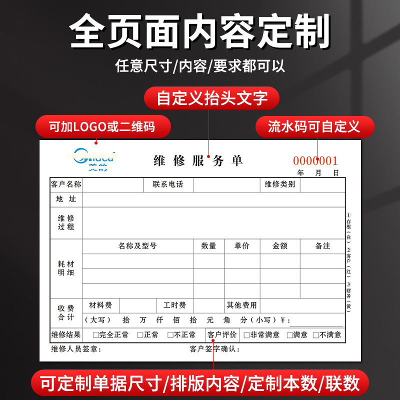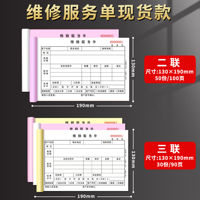 定制维修单二联三联设备保修收据物业报修单家电记录登记本电梯维护检修工时单任务修理单空调售后维修服务单