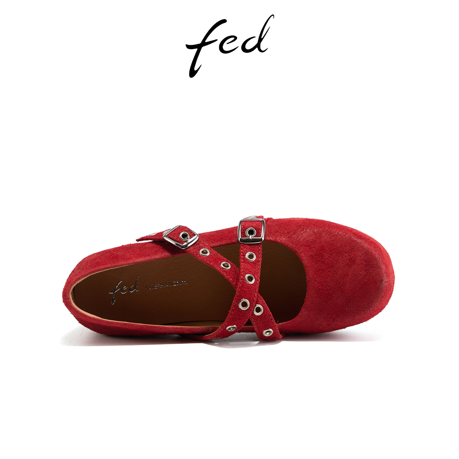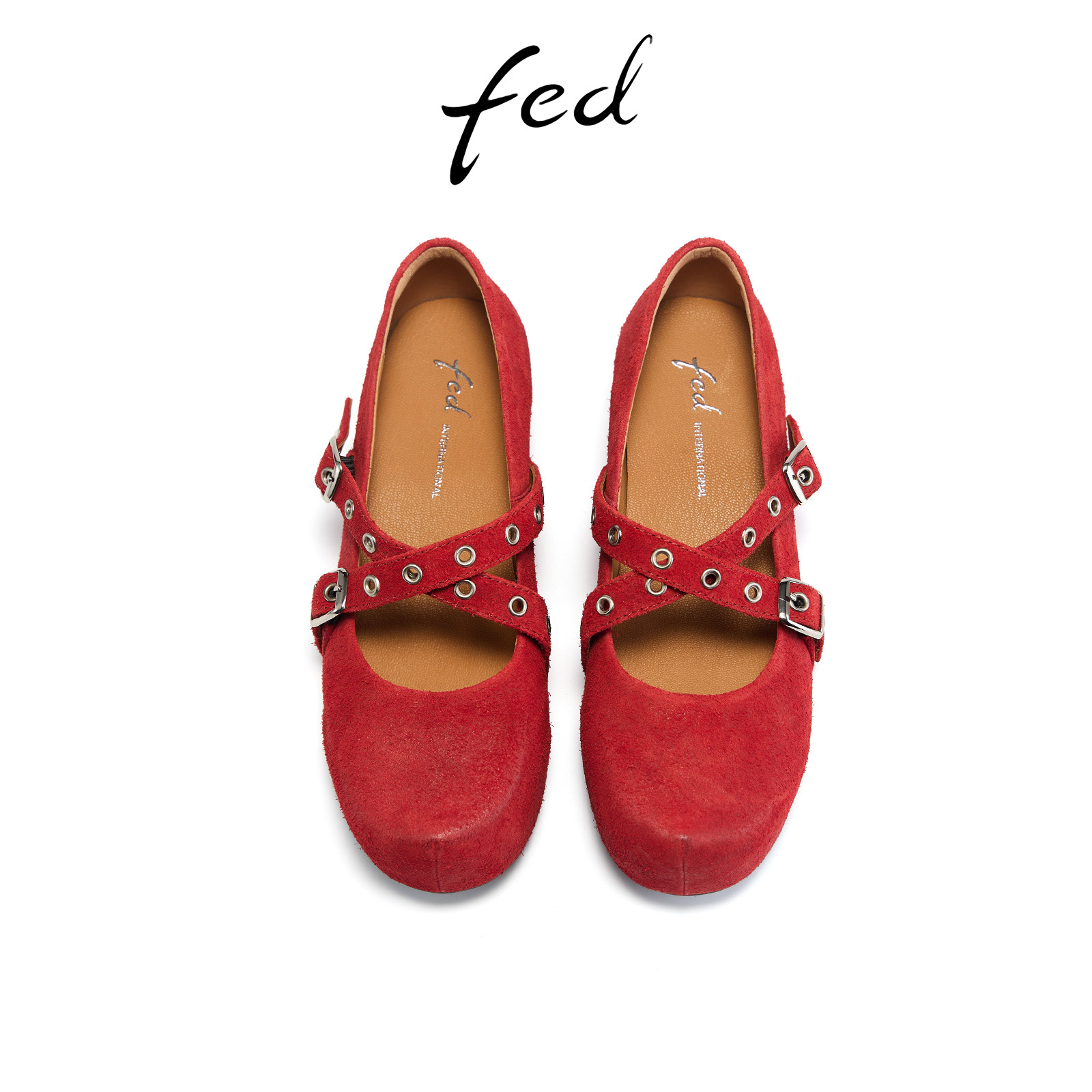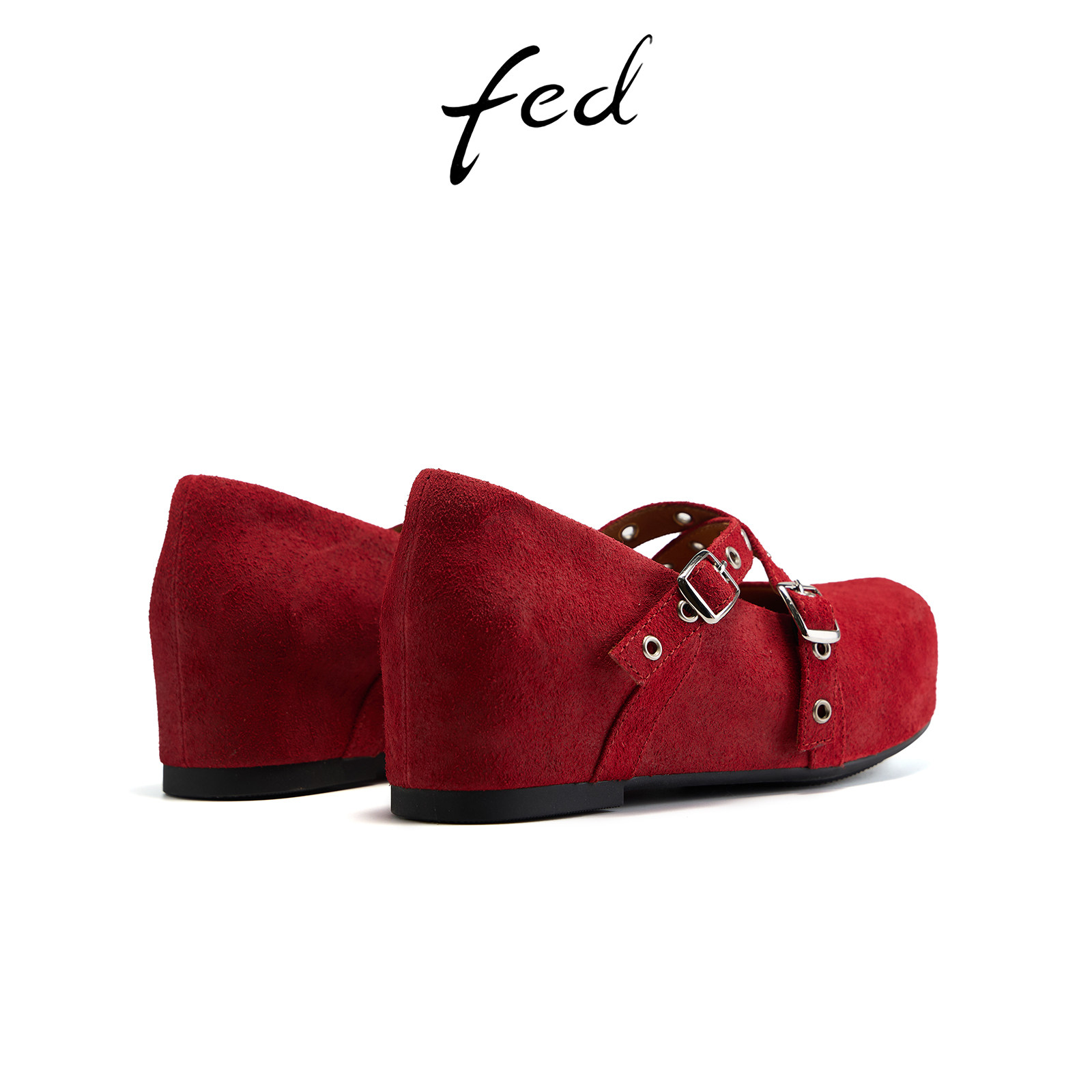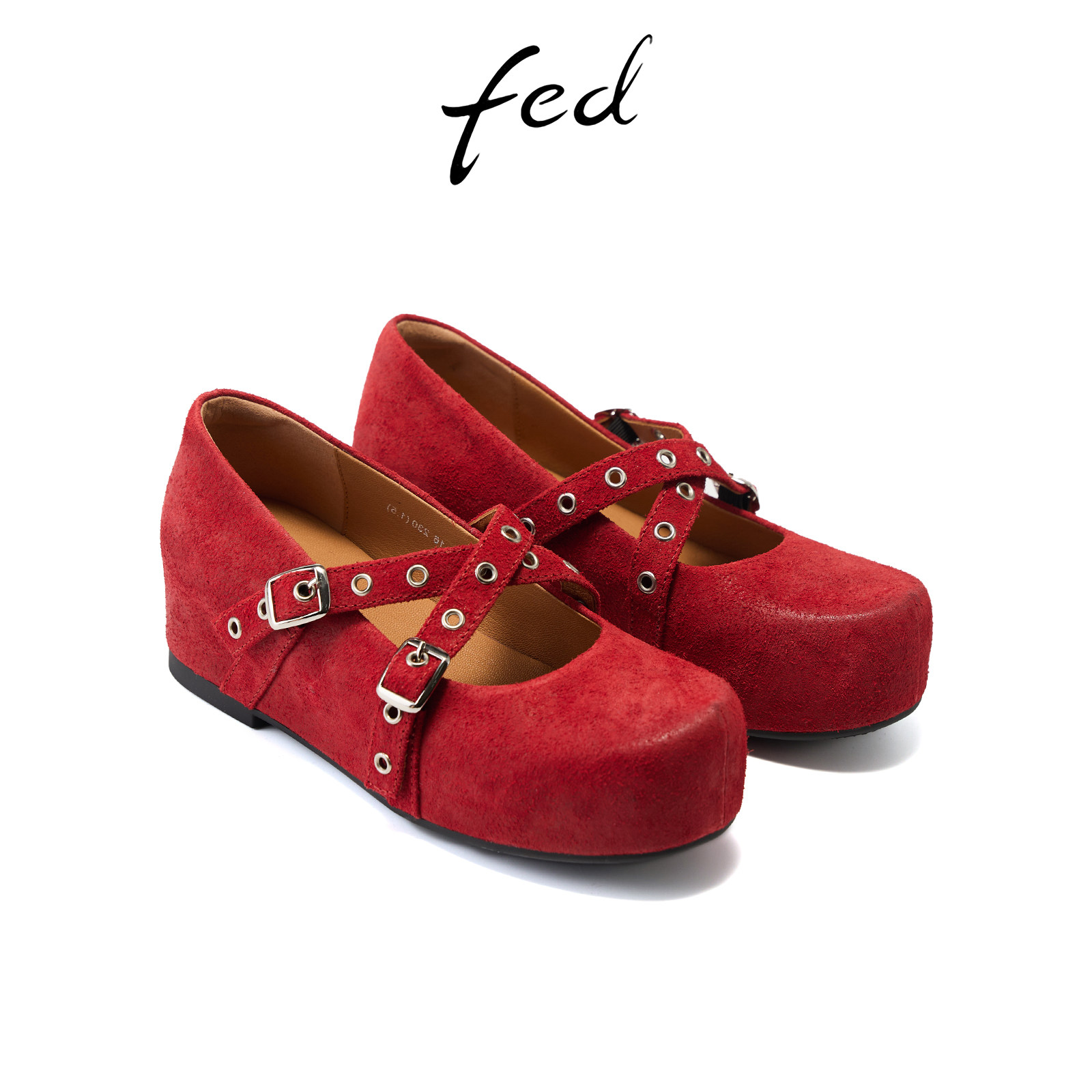 fed坡跟单鞋春季新款女鞋红笺织痕玛丽珍鞋增高芭蕾鞋女款YAB002