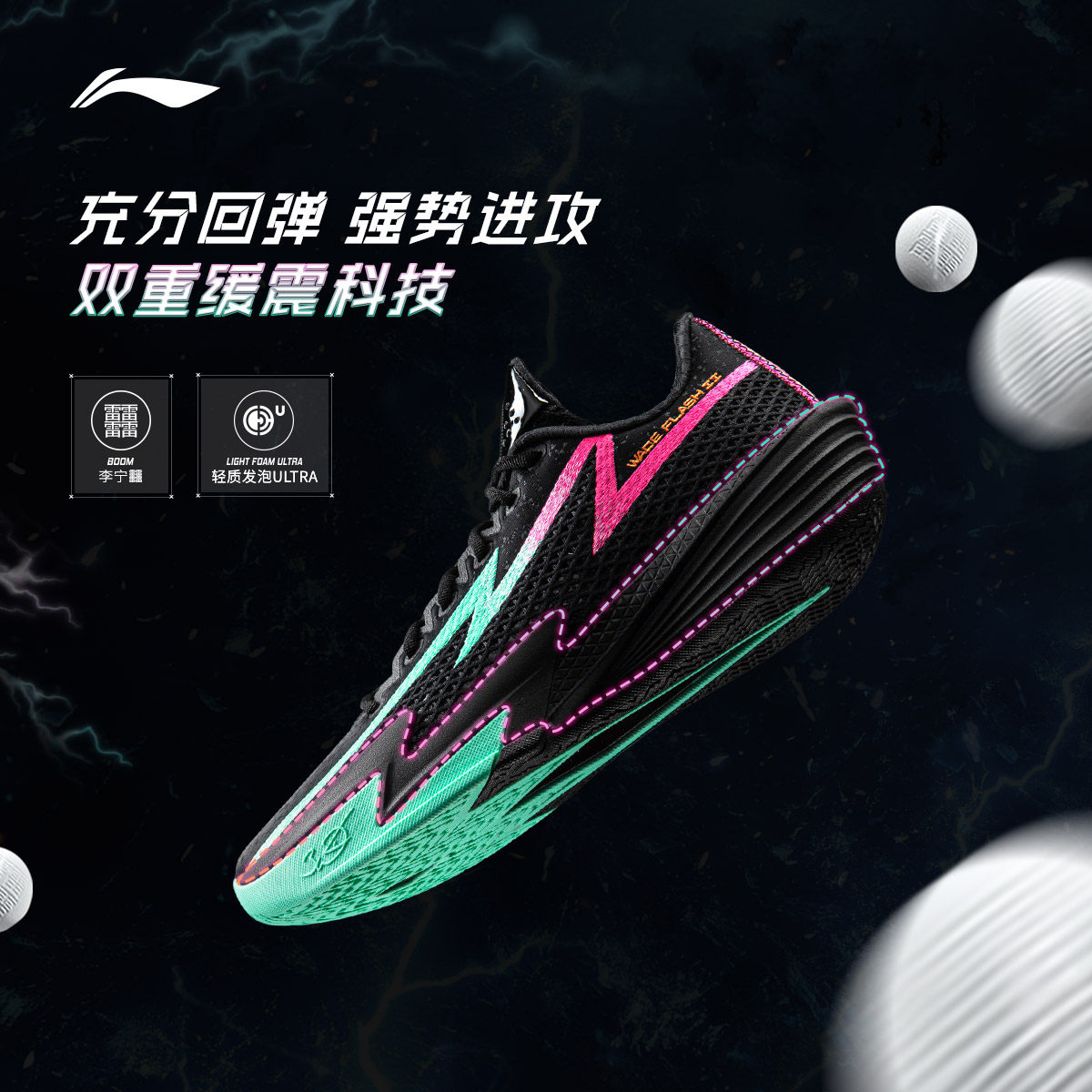 李宁闪电2 | 韦德篮球鞋男新款轻量高回弹耐久专业实战缓震运动鞋