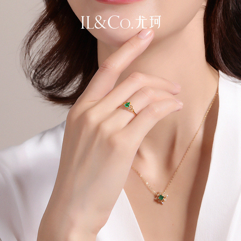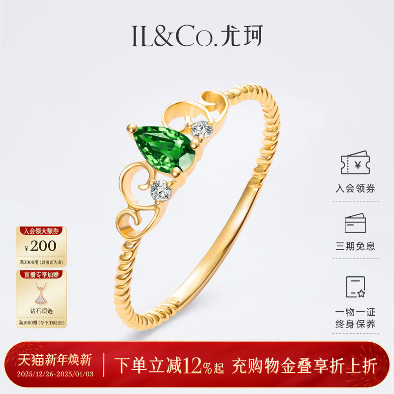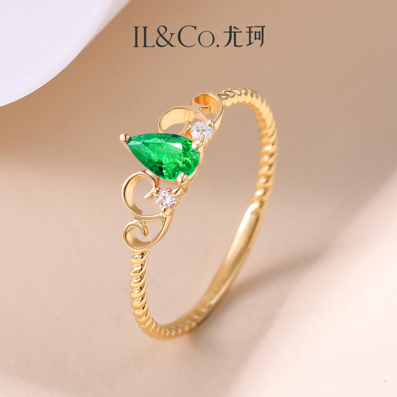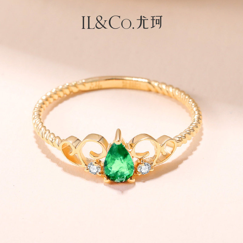 ILCO尤珂「洛莉可可」18K金祖母绿戒指皇冠设计天然彩宝红宝石戒
