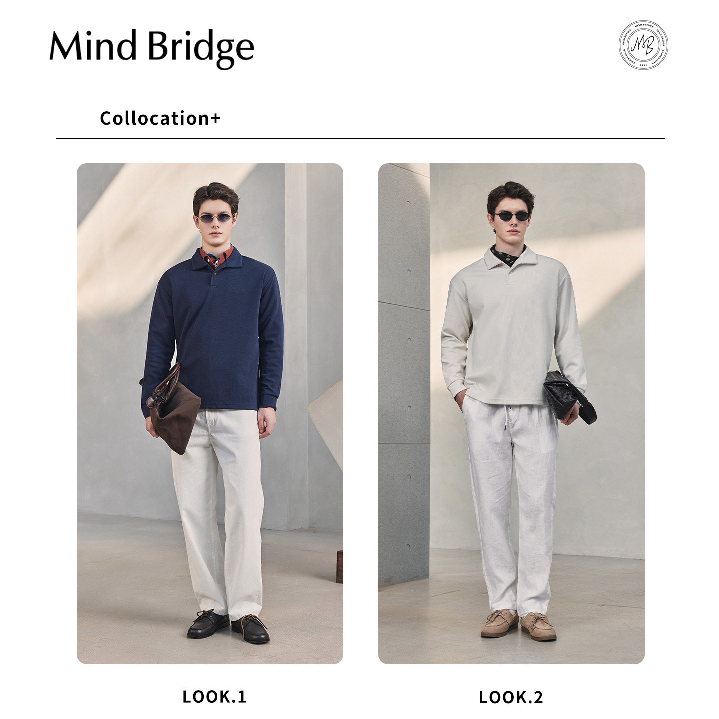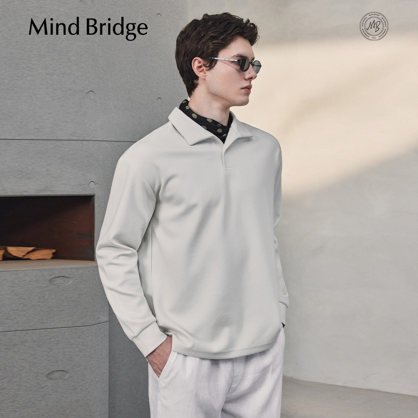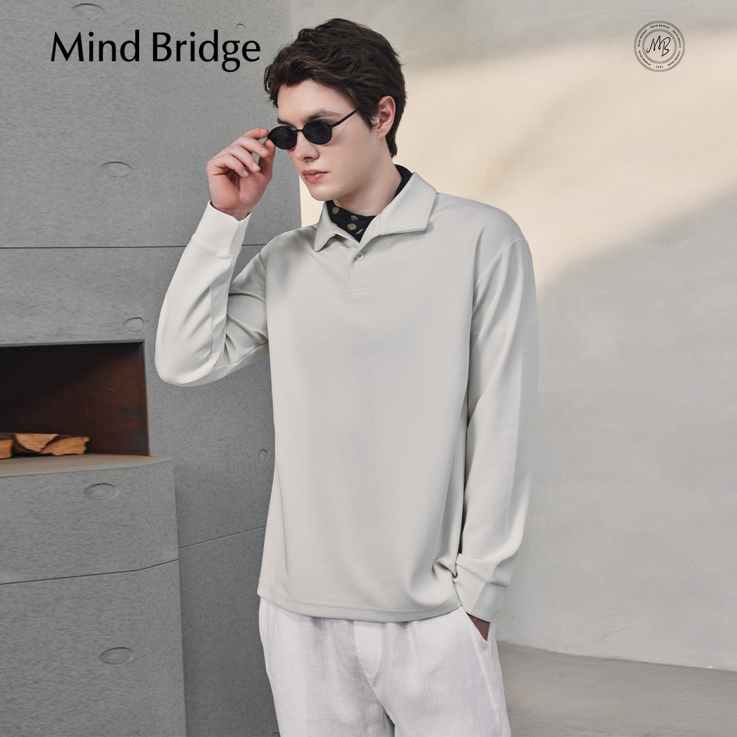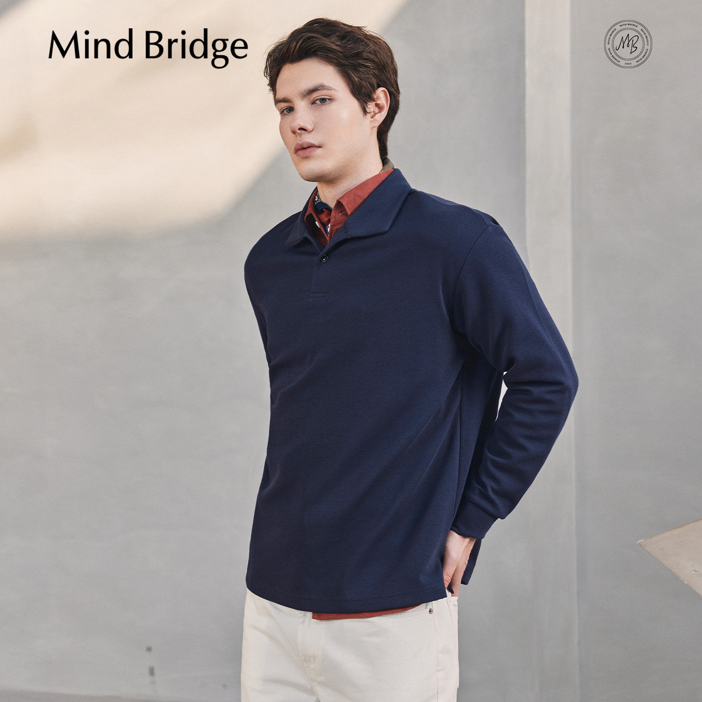 Mind Bridge男士Polo领长袖T恤2026年春季纯色休闲含莫代尔卫衣男
