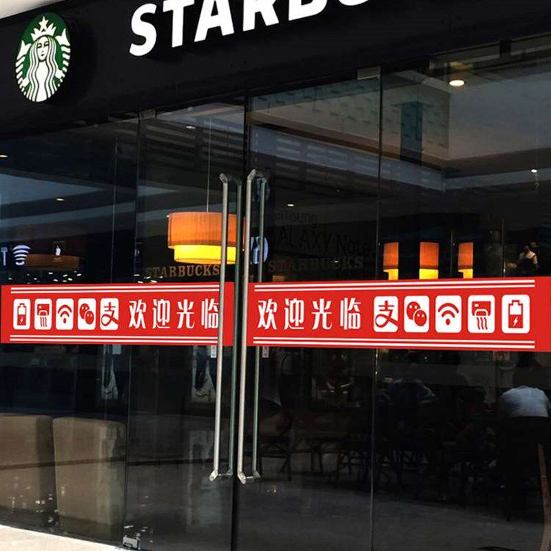 极速欢迎光临门贴腰线贴纸店名定制超市饭店玻璃推拉门防撞条门带