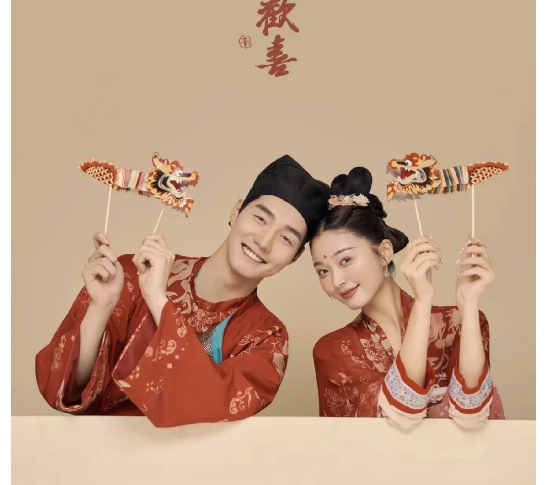 唐宫夜宴古代中式婚纱照摄影道具明制汉服订婚书手提灯笼风筝纸龙