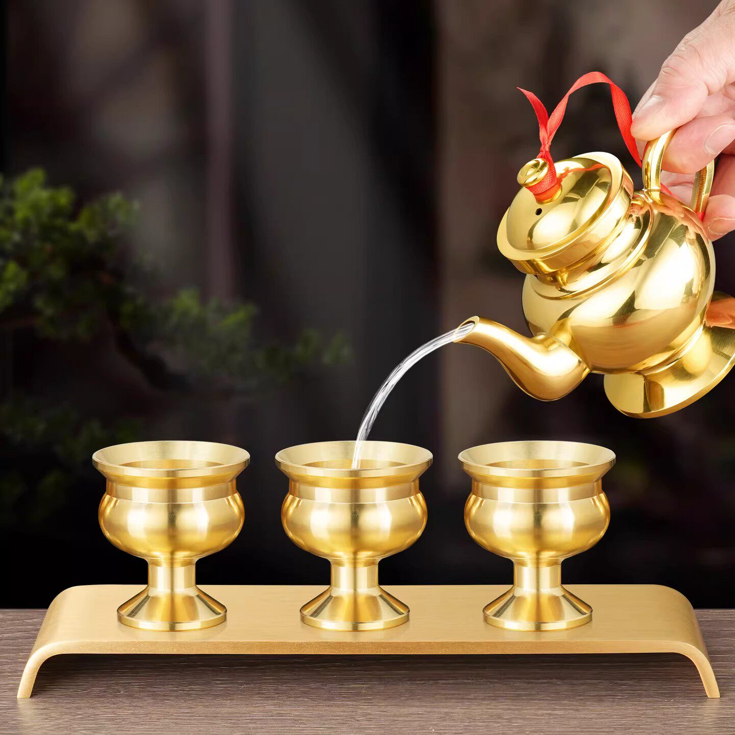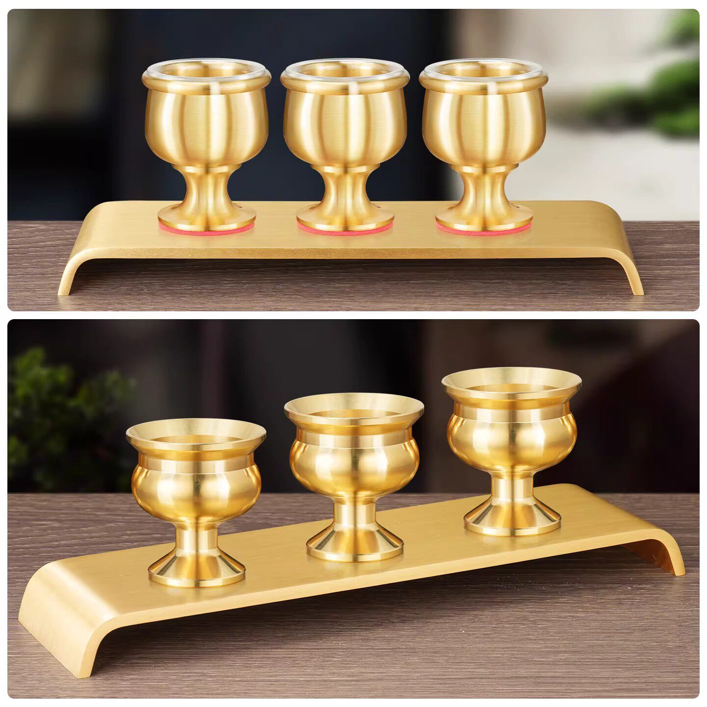 纯黄铜供杯供台套装佛前酒杯底座财神爷仙家贡台光身神台家用佛具