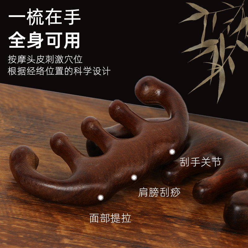 头皮按摩梳檀木梳子男女刮痧头疗头部经络专用圆头不易发脱五指