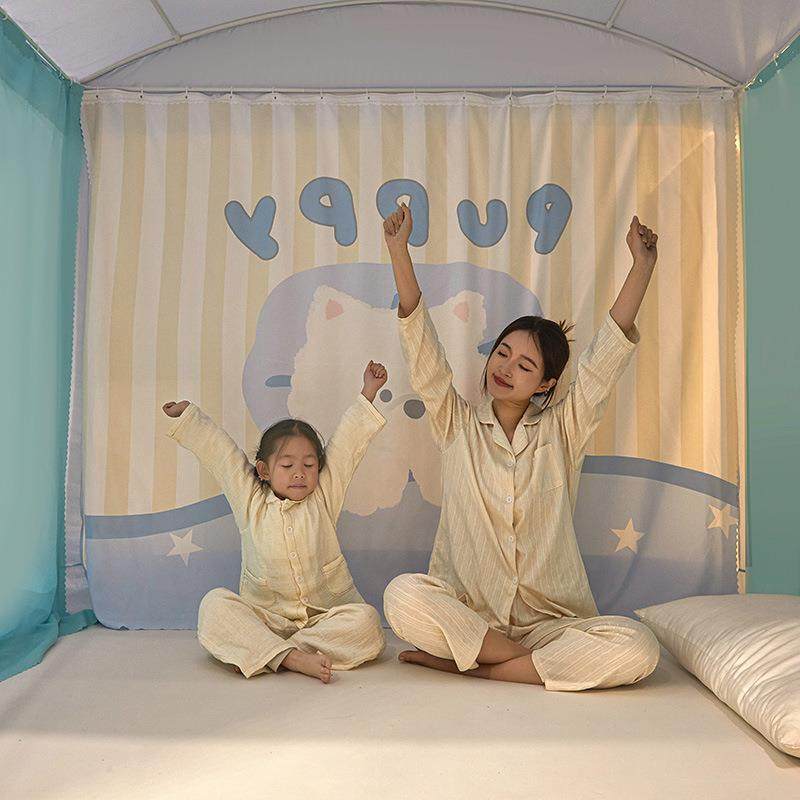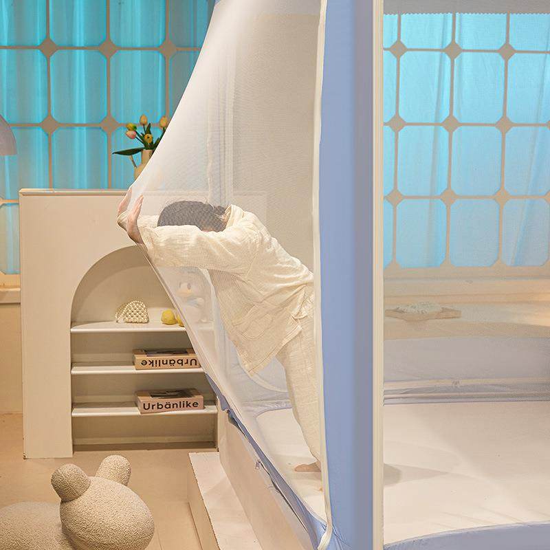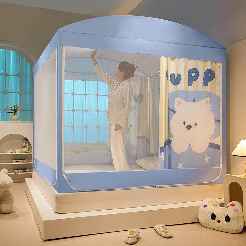 a类三开门蚊帐家用1米8床儿童文帐带遮光床帘夏季加密纹帐1米5床