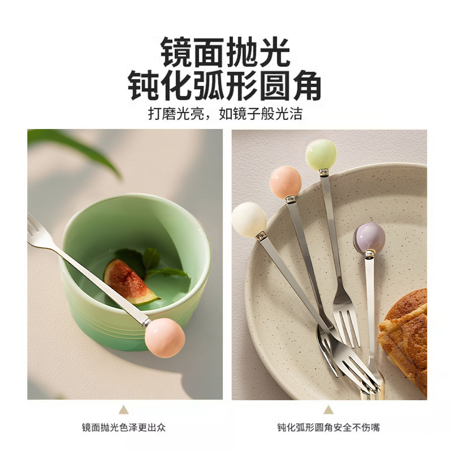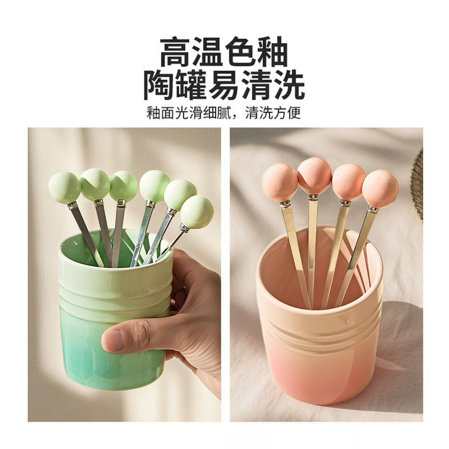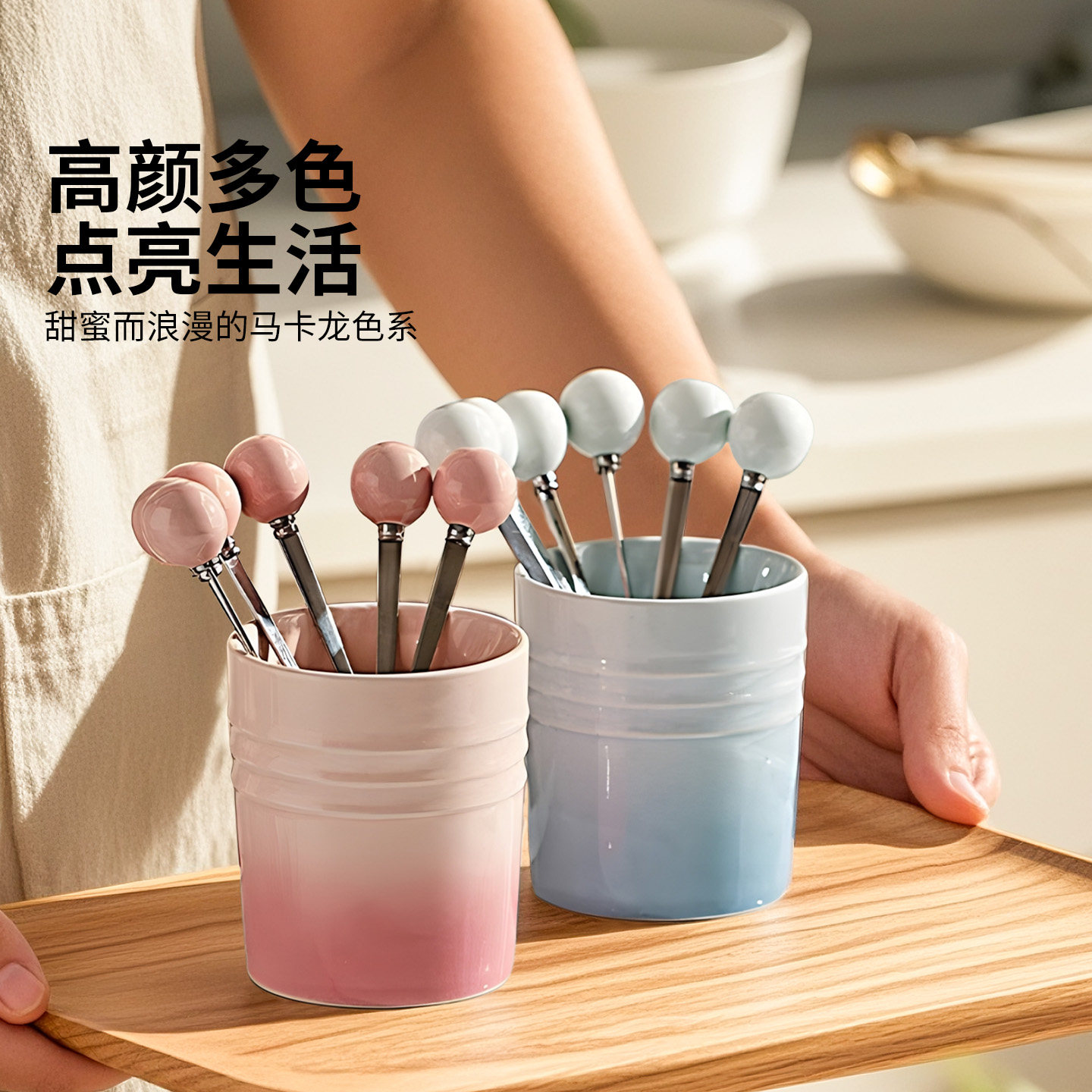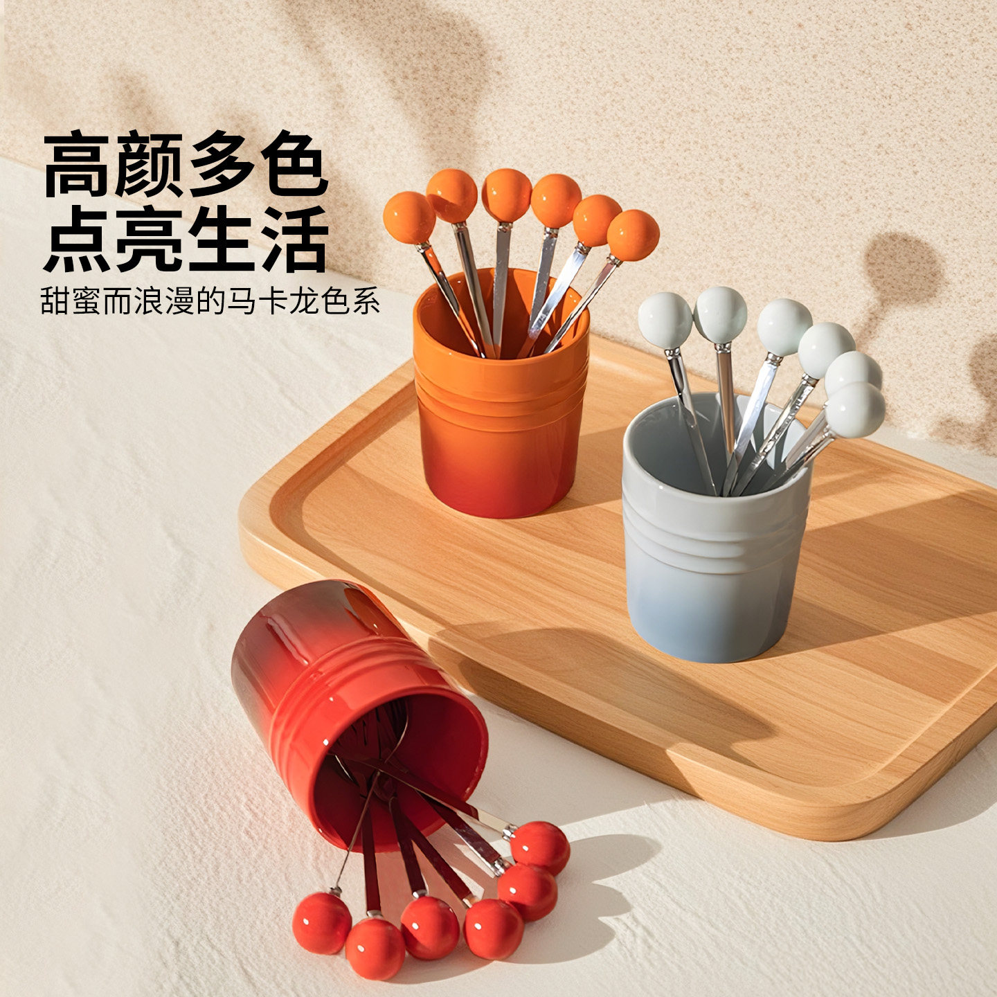 国风水果叉套装家用高颜值创意甜品叉子渐变色收纳罐不锈钢水果签