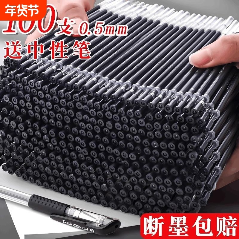 笔黑笔芯黑色中性笔全针管芯0.5子弹头碳素水笔中性笔速干考试专用用黑笔替换笔芯初中生文具用品红色蓝色