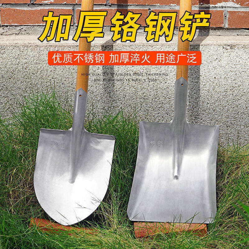 不锈钢锹铲挖土粮食大铁锹加厚大号煤锹铬钢大铲植树园林全钢开孔