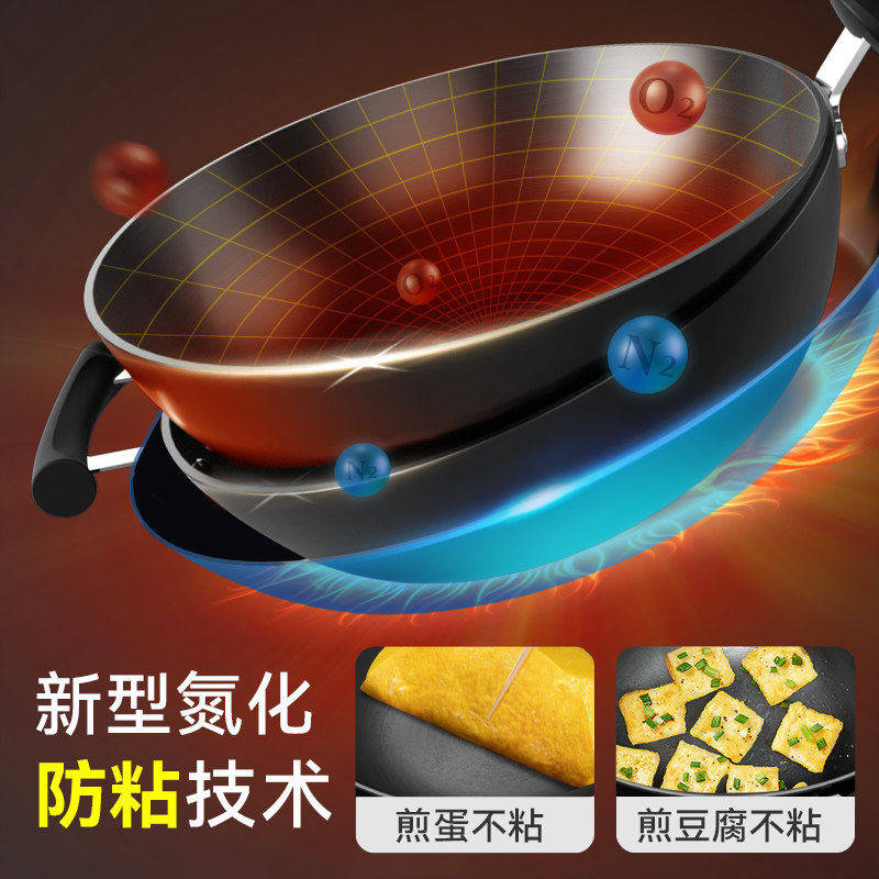 炊大皇铁锅家用无涂层不锈炒锅燃气灶专用炒锅炒菜锅平底锅极铁锅