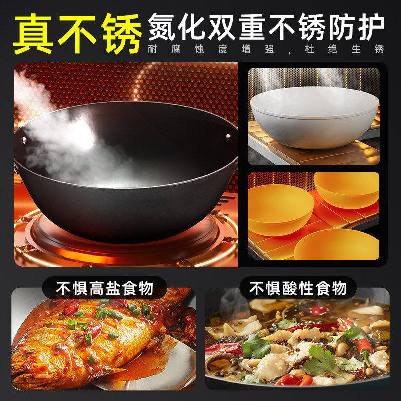 三四钢?不锈钢0涂层炒锅家用316L食品级加厚圆底炒菜锅官方正品