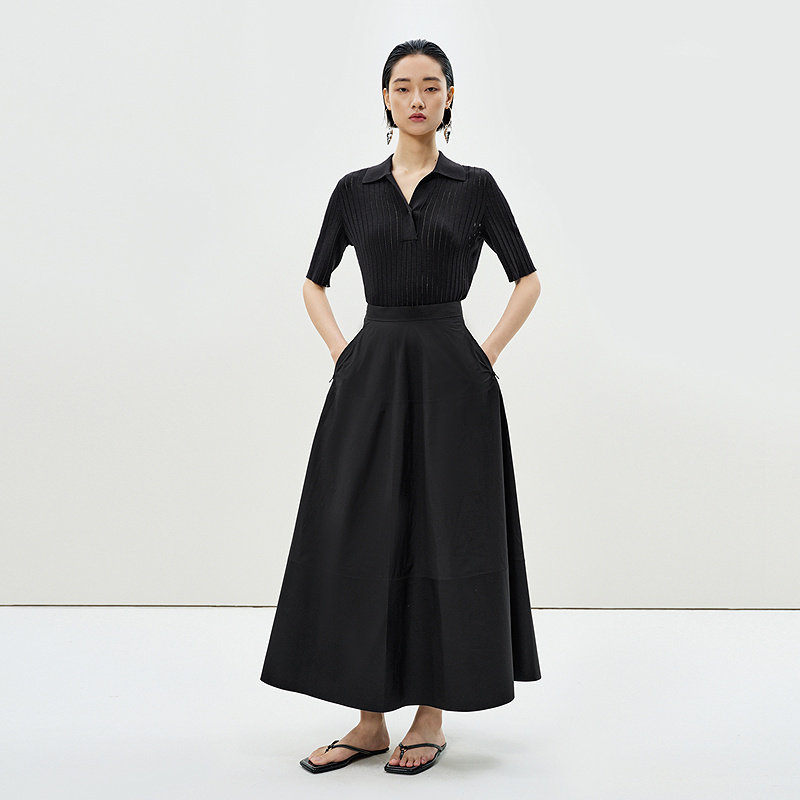 【精工系列】LESS春夏A版伞裙女高腰挺括廓形长款半身裙2P5D10590