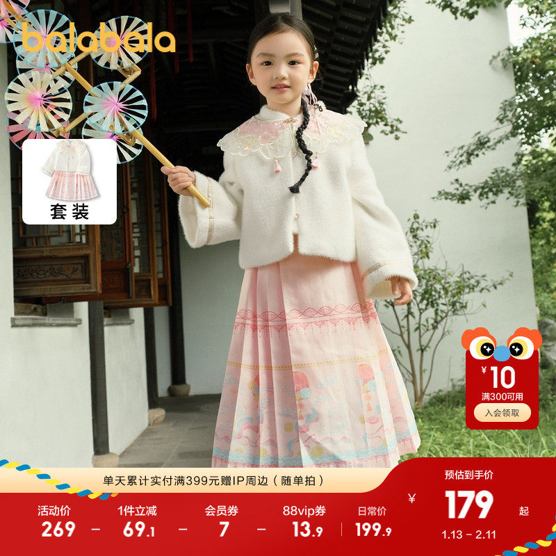 巴拉巴拉童装儿童马面裙套装女童冬装红色宝宝新中式国风时尚小童