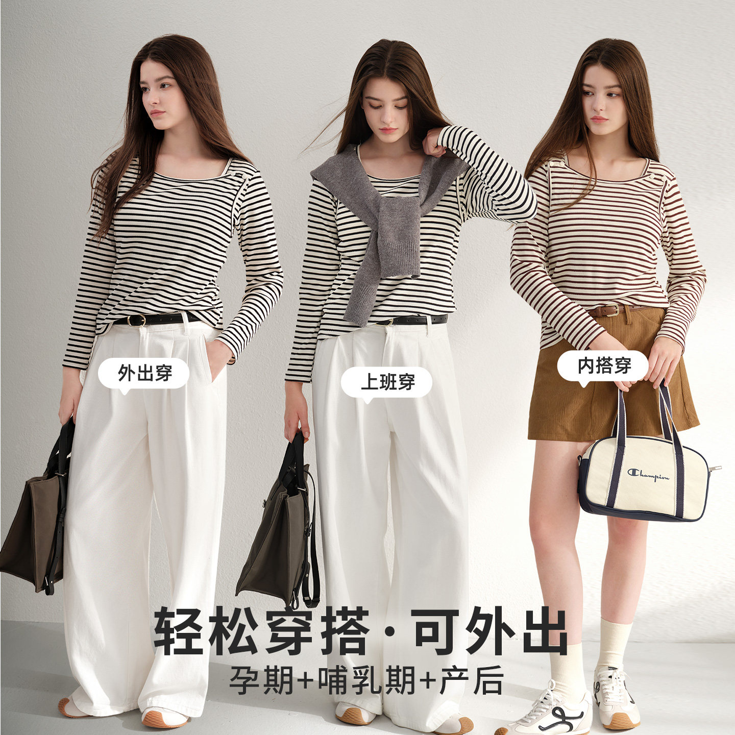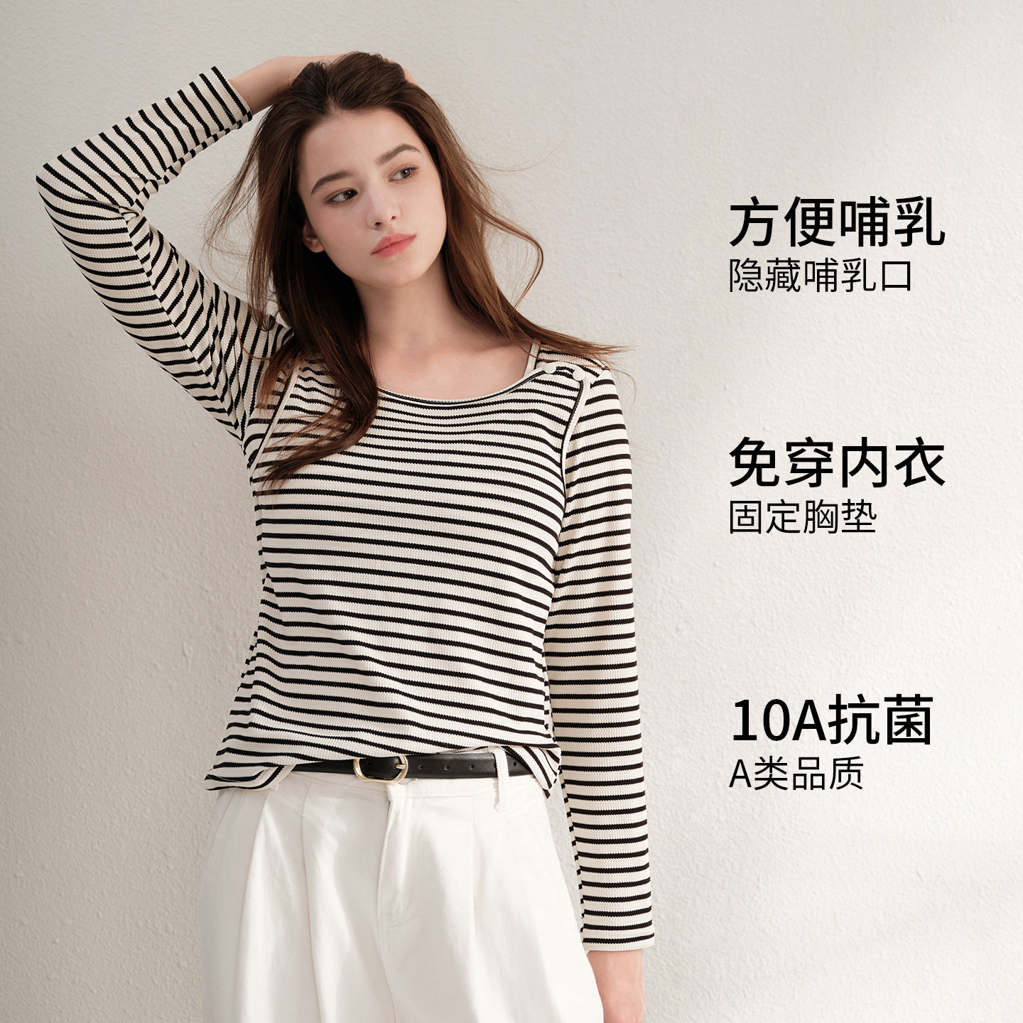 哺乳上衣秋衣单件内搭保暖孕妇打底衫外出喂奶秋冬款月子服带胸垫