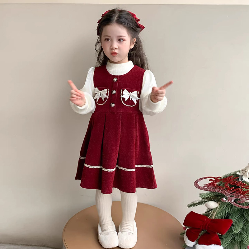 [保暖加厚]连衣裙女童红色小香风背心裙子大童深秋宝宝秋冬衣服
