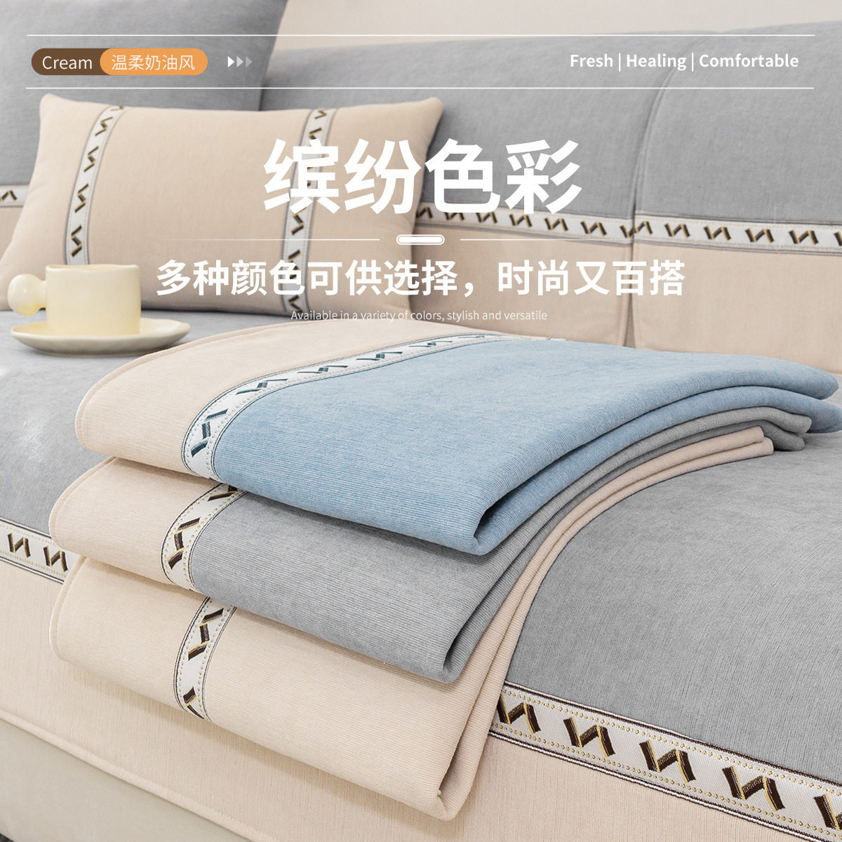 雪尼尔沙发垫四季通用可拆洗防滑防猫抓简约现代三座一贵妃沙发套