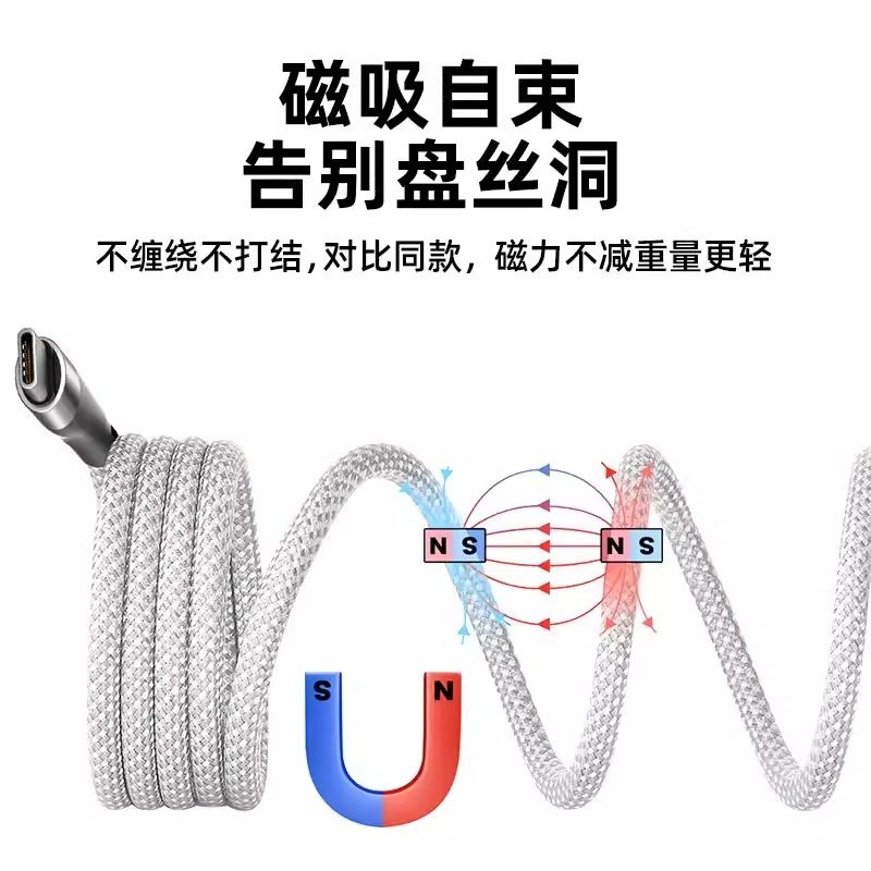 磁吸typec快充100w收纳数据线60w适用华为苹果小米vivo安卓双头tpyec充电器线iphone15车载磁吸贴贴PD20w线