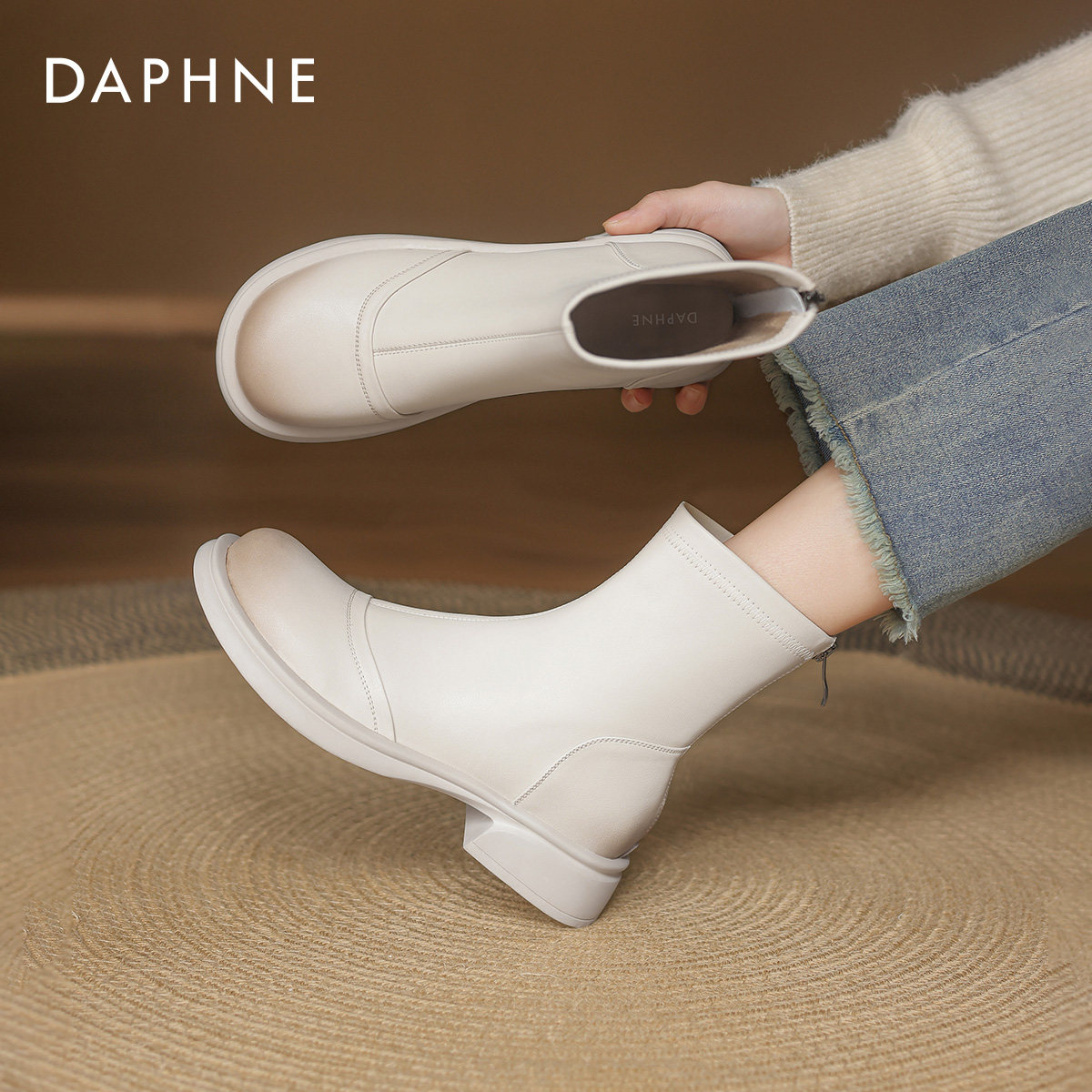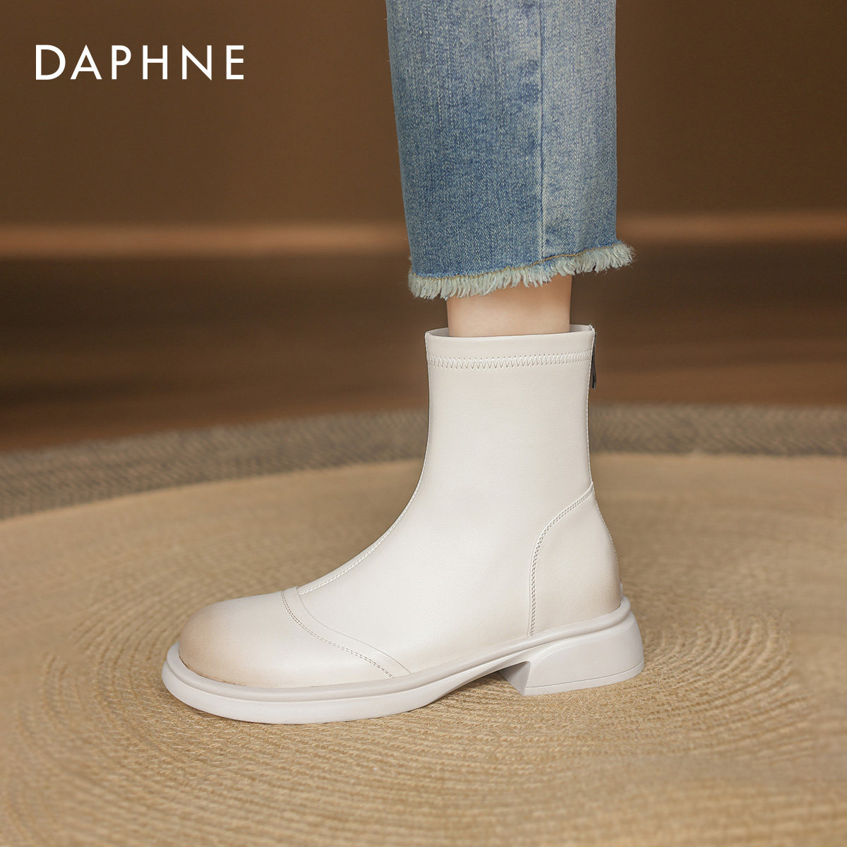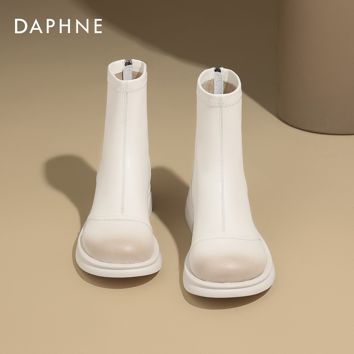 达芙妮白色马丁靴女2026新款春季平底短靴春款切尔西皮靴瘦瘦靴子