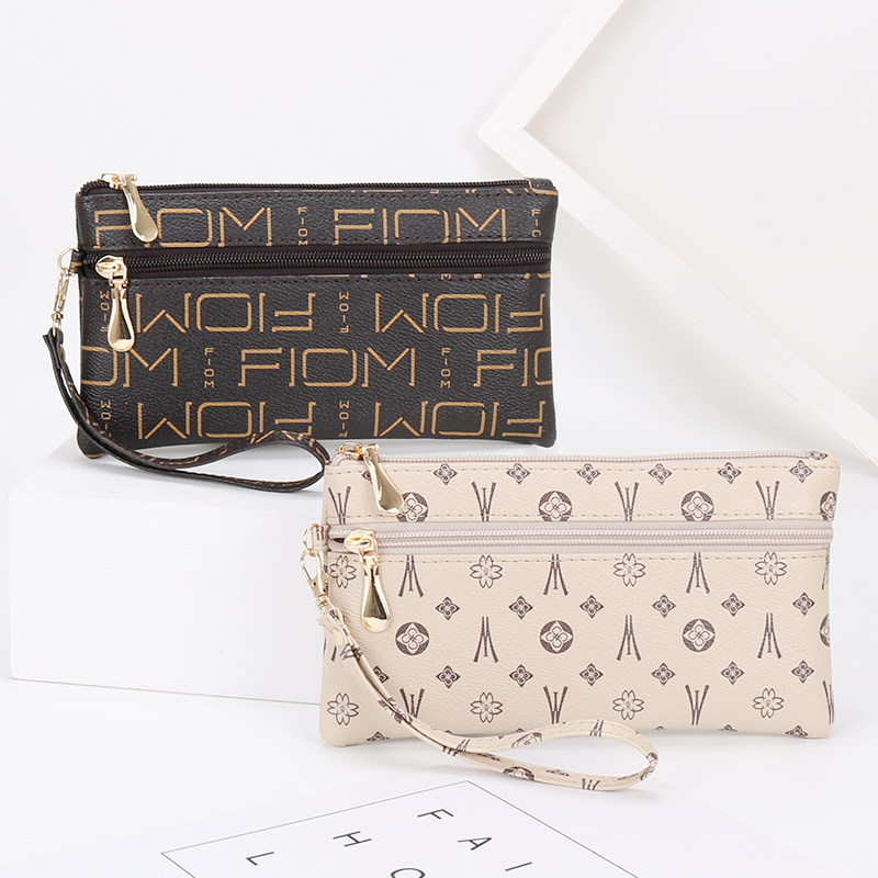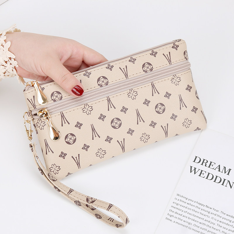 2025新款大屏装手机零钱包女印花横款手拿小包三层拉链手机袋防水