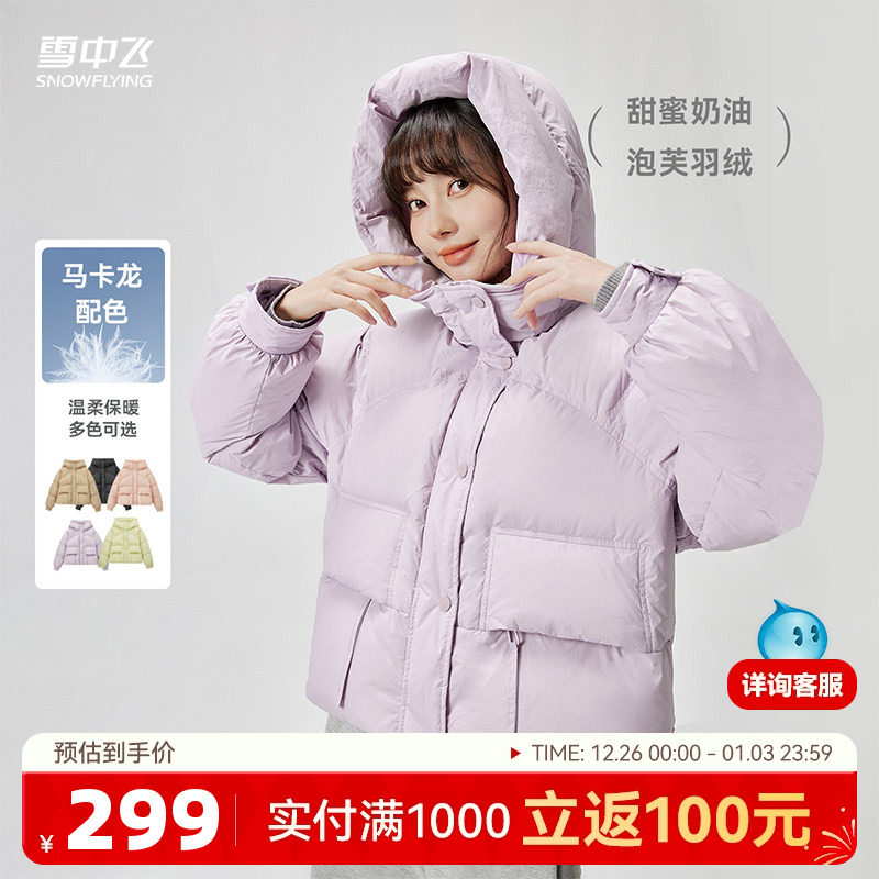 雪中飞2025秋冬紫色羽绒服女式短款连帽截短休闲小个子韩版外套