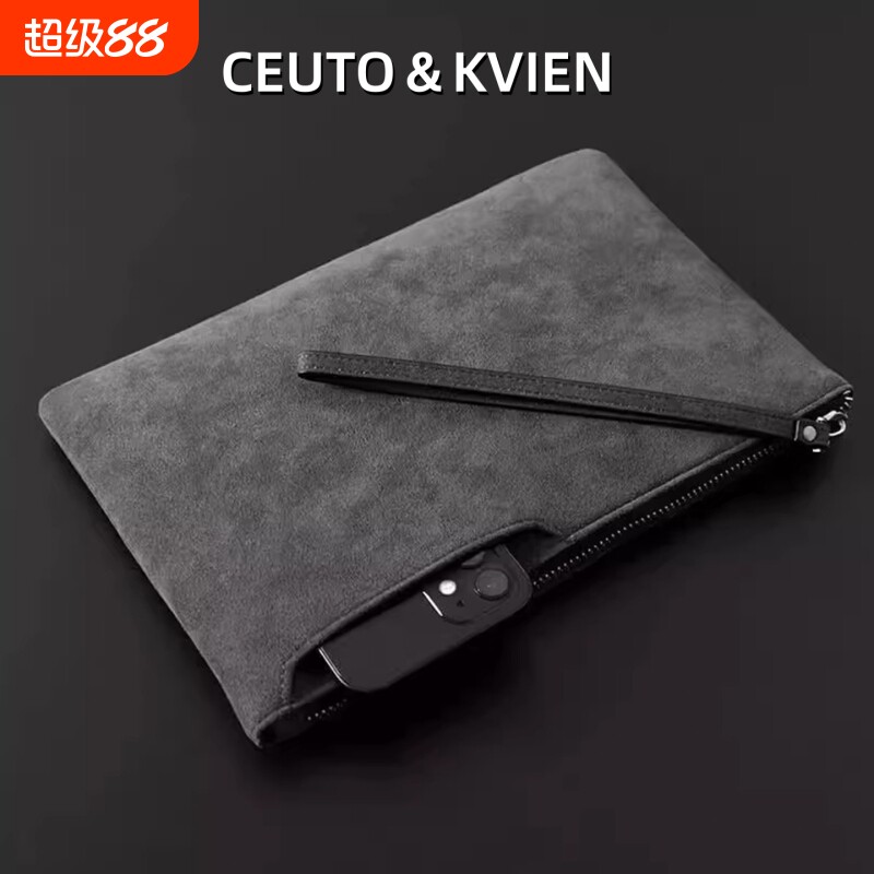 CEUTOKVIEN大容量翻毛皮卡包商务休闲手拿包手机证件位多功能手袋