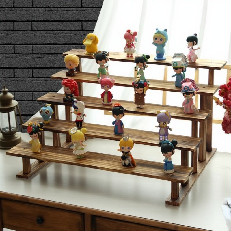 纯实木复古展示架桌面收纳架子手办玩具盲盒玩偶绿植阶梯多肉花架