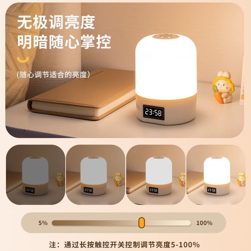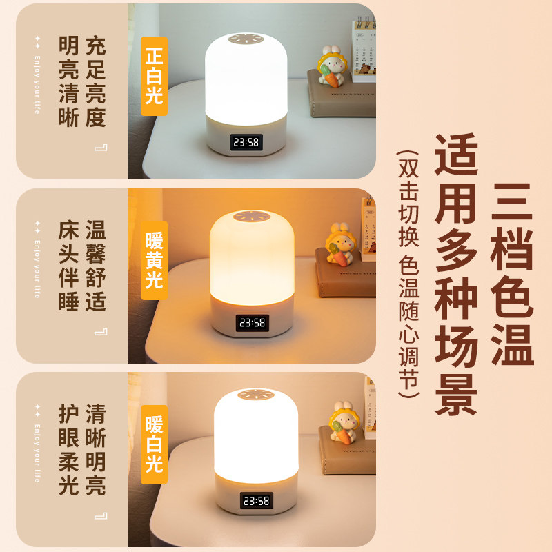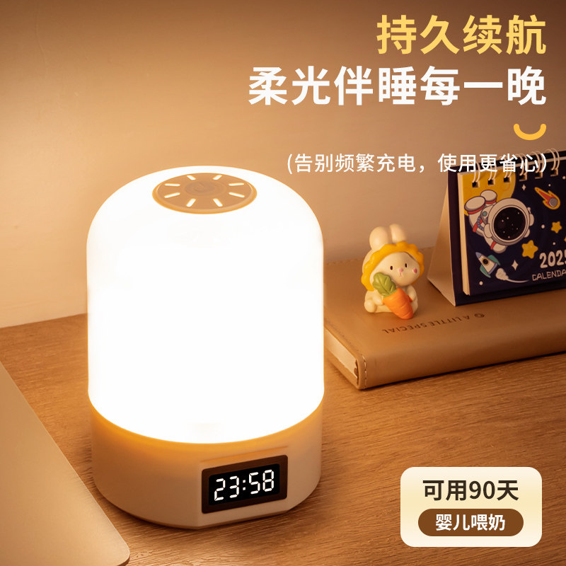 遥控时钟小夜灯充电式卧室床头灯婴儿喂奶护眼台灯起夜间童睡眠灯