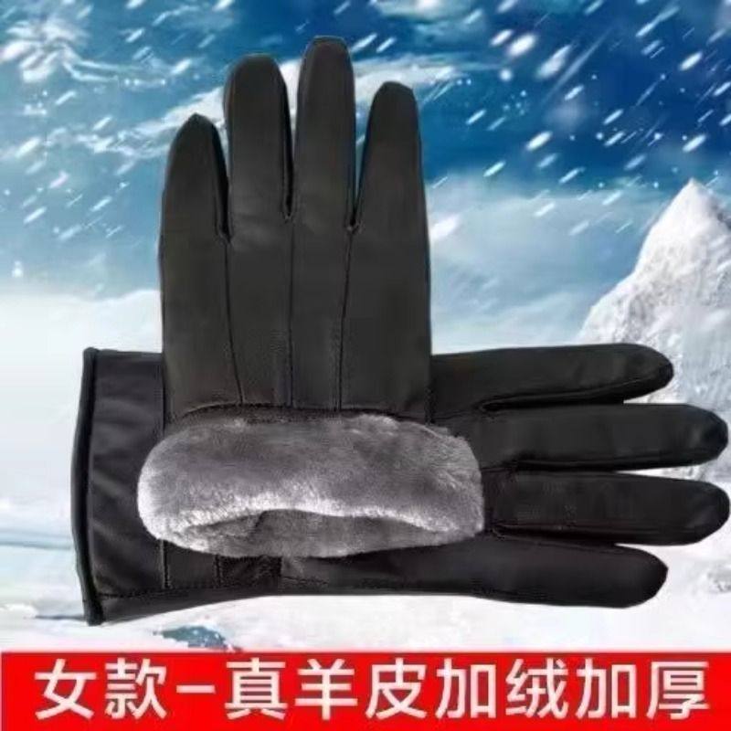 女士羊皮手套加绒保暖冬季骑行电动车摩托车防水防风女生真皮手套