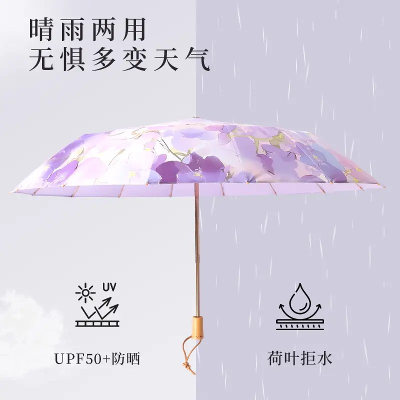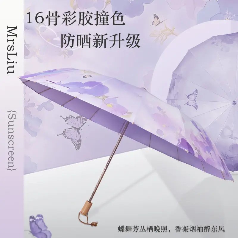 16骨彩胶雨伞女折叠大号抗风太阳伞晴雨两用国风防晒紫外线遮阳伞