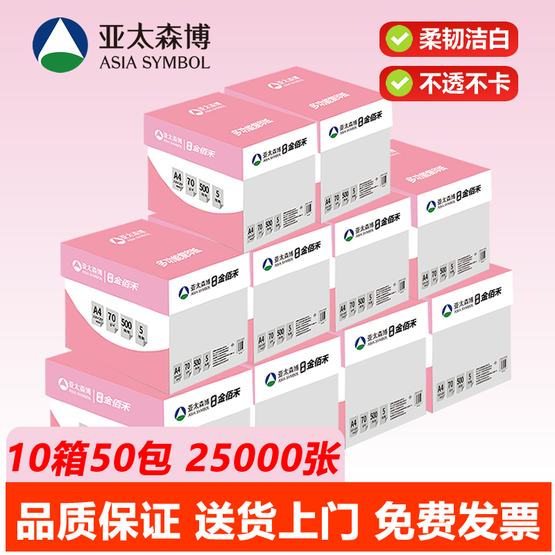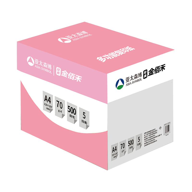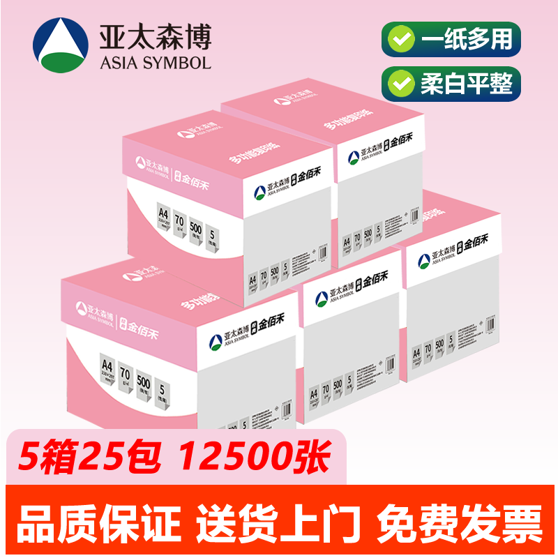 亚太森博a4打印纸70g金佰禾粉拷贝可乐双面打印复印纸办公学习用纸草稿白纸 500张/包 整箱5包2500张
