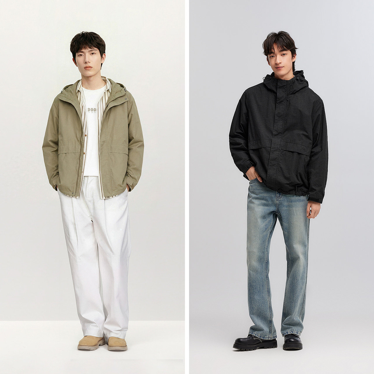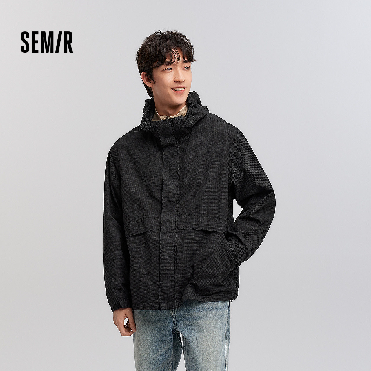 森马夹克男春季轻复古松紧绳连帽外套时尚百搭宽松水洗大插袋上衣