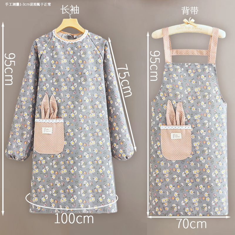 新款棉布耐磨围裙长袖厨房家用防污罩衣透气围腰做饭上班工作服女