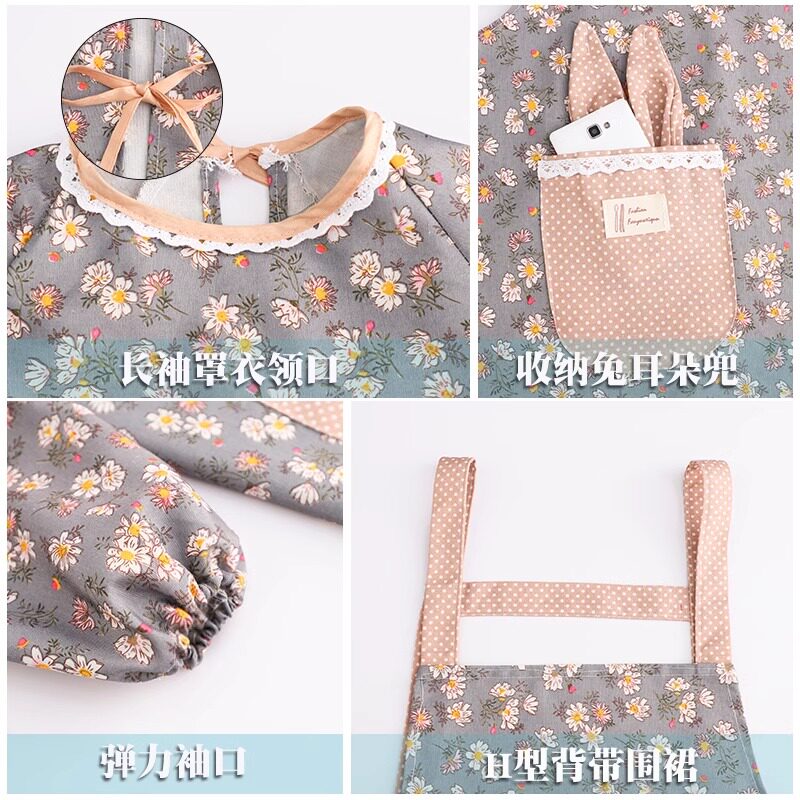 2026日本新款棉麻长袖围裙家用厨房透气罩衣女耐磨防污做饭工作服