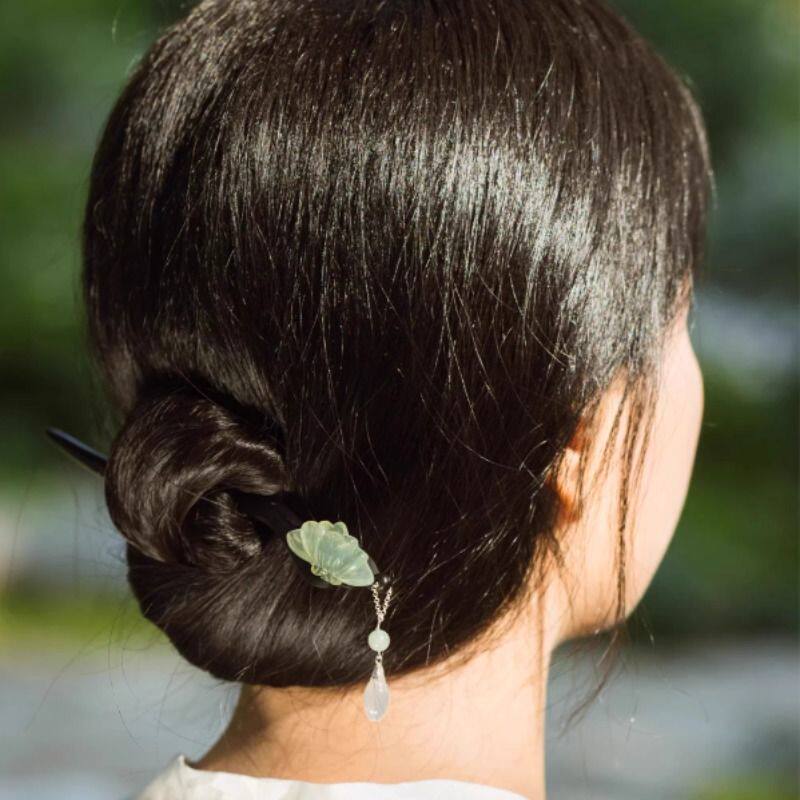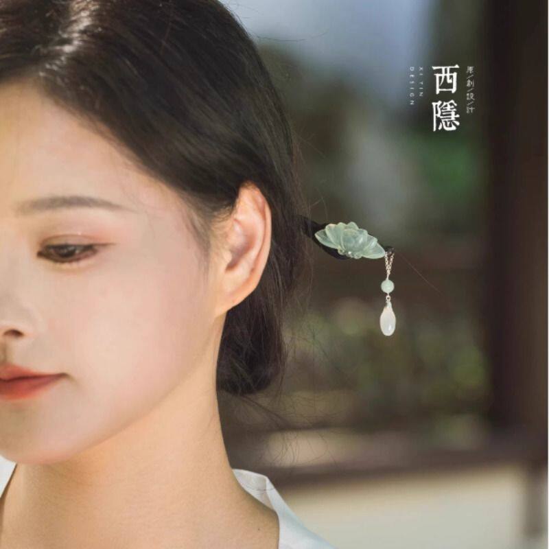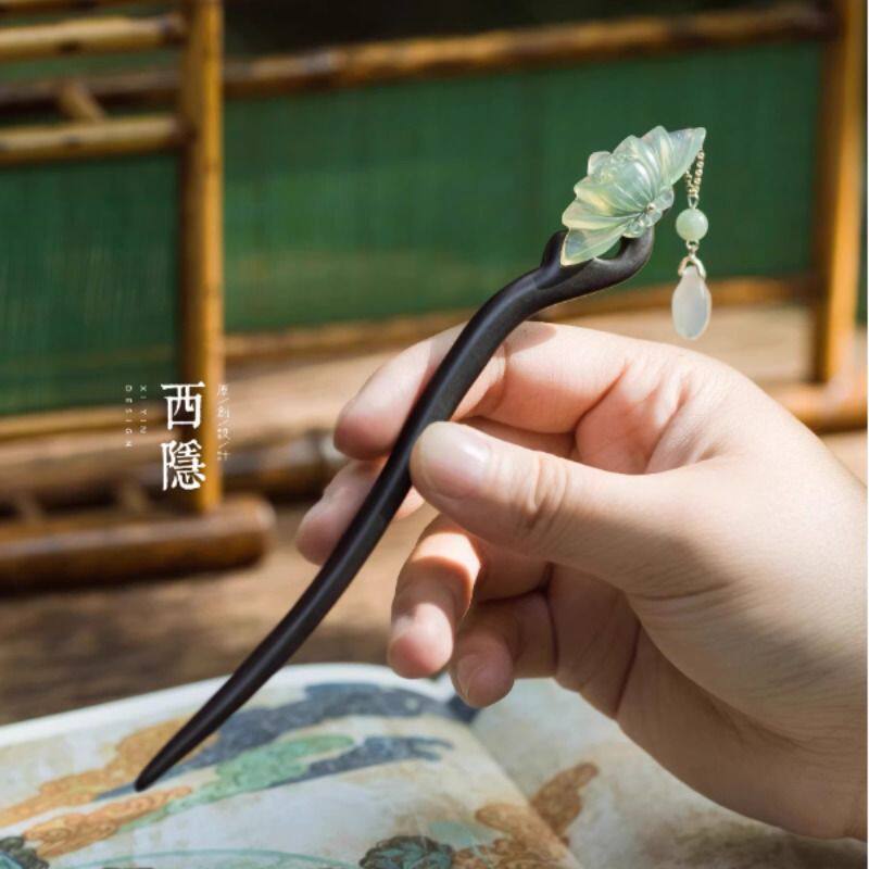 2025十里桃花冰莲黑檀木发簪子高级感古风新中式盘发旗袍