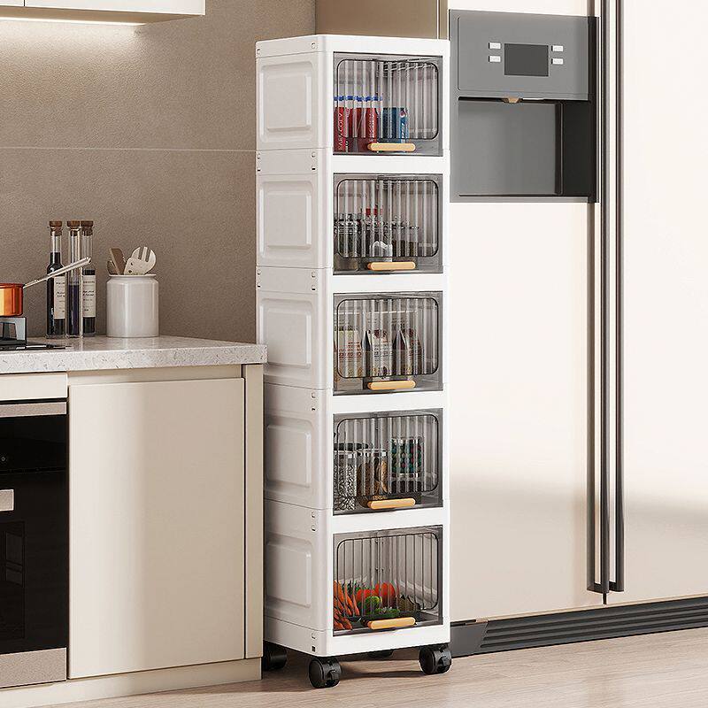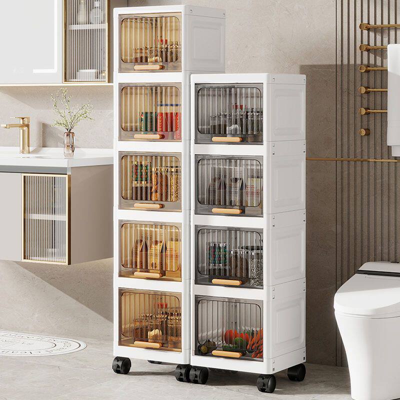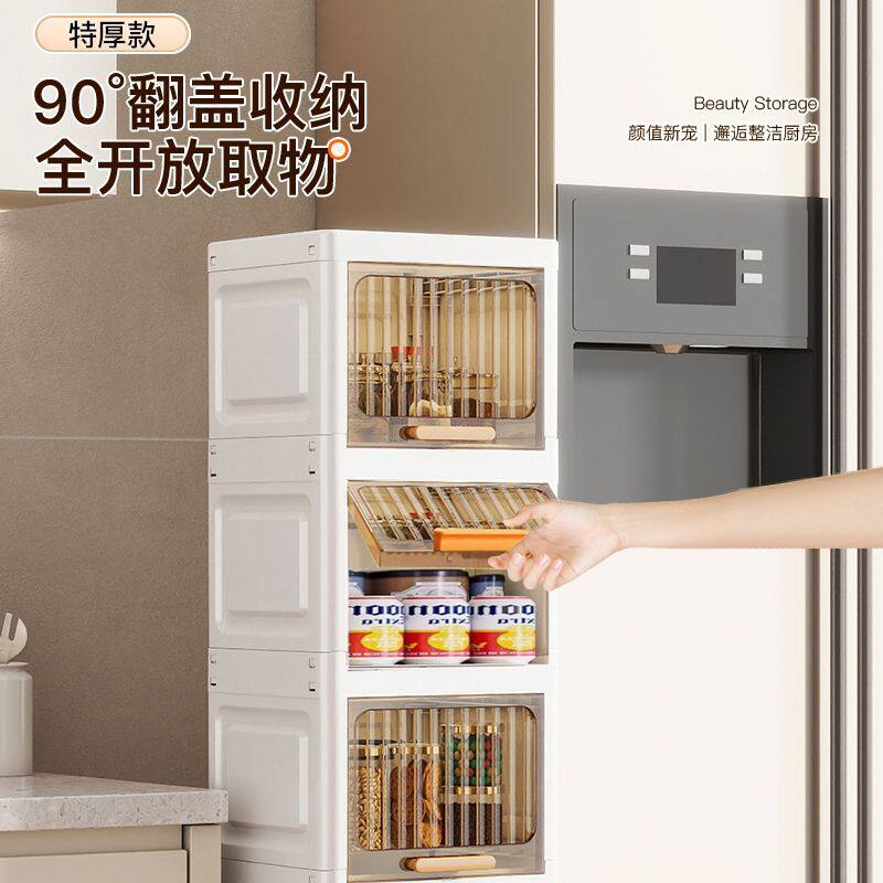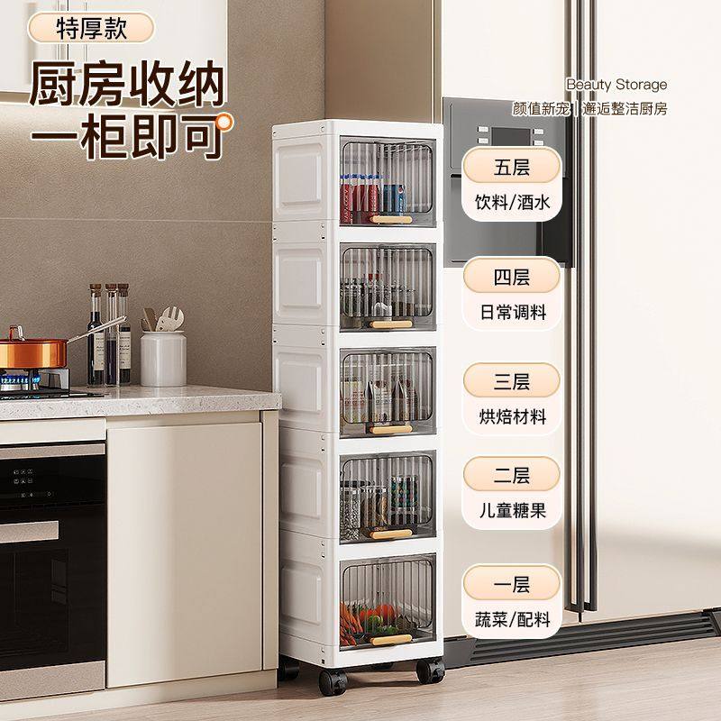 翻盖夹缝收纳柜厨房缝隙置物架卫生间窄边储物柜多层塑料零食柜子
