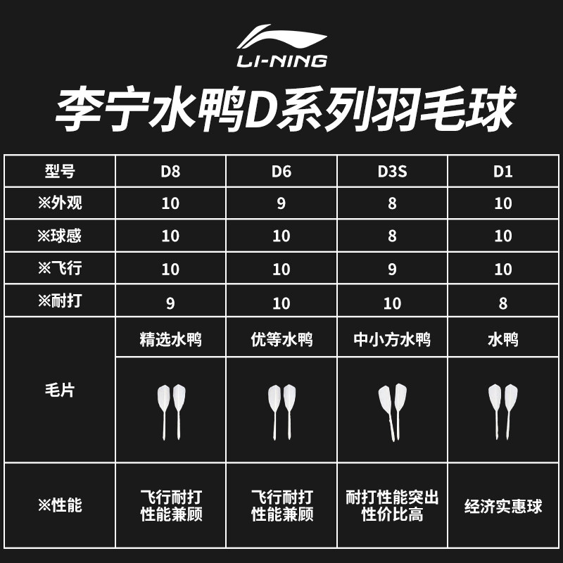 李宁羽毛球D8飞行稳定专业训练比赛用球12只耐打耐用正品鸭毛球