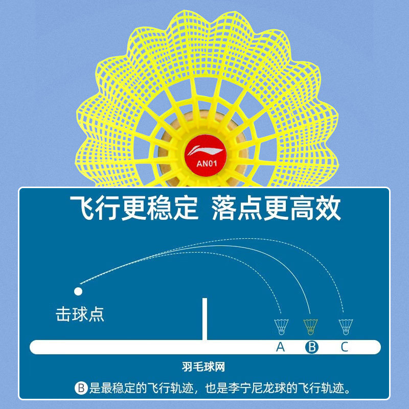 官方正品李宁羽毛球尼龙球AN01防风稳定耐打训练娱乐用实心塑料球