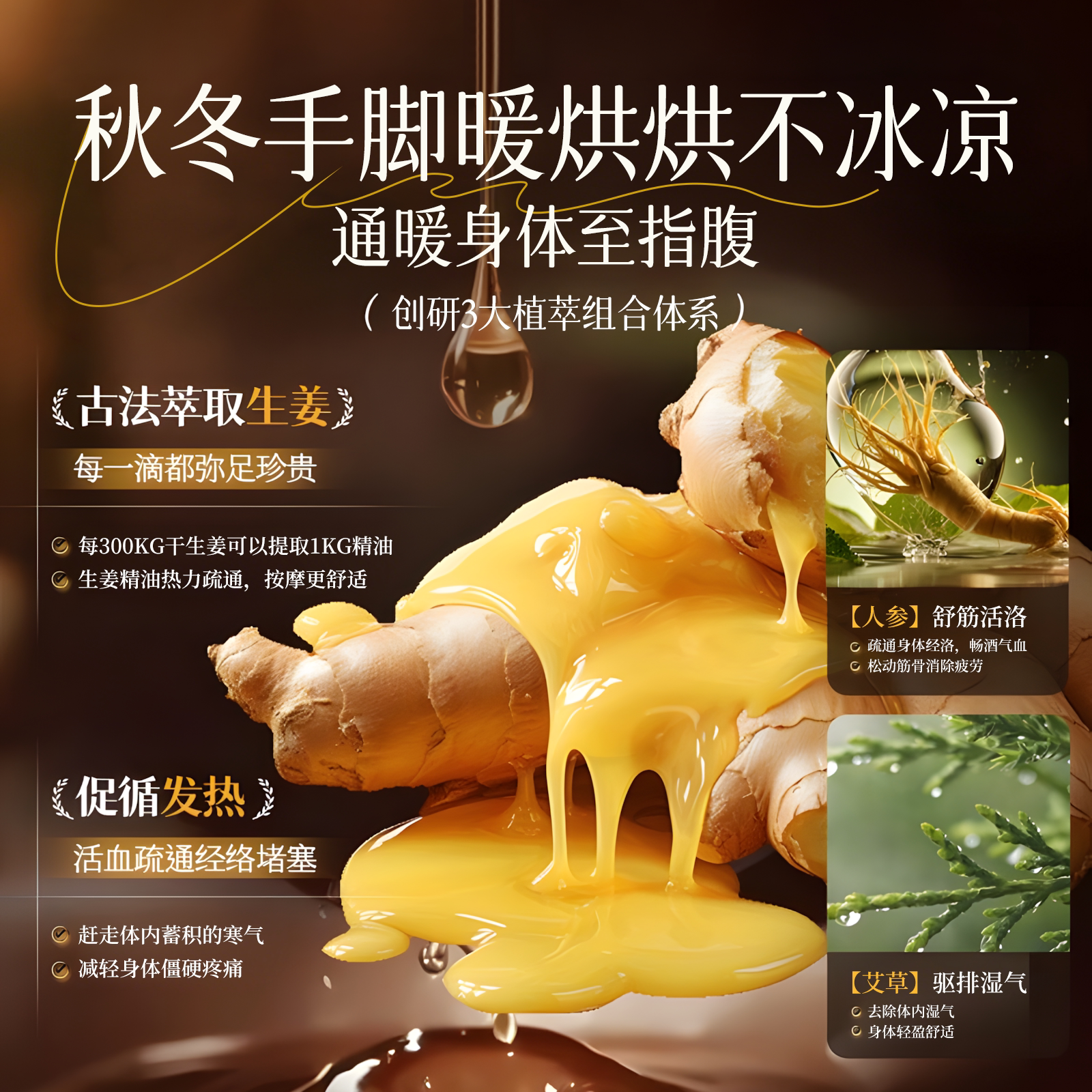 生姜艾草发热按摩精油全身身体通经络开背推背刮痧正品官方旗舰店