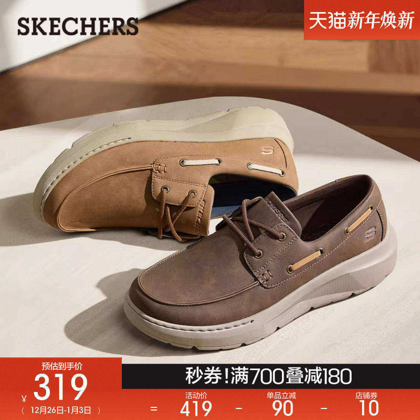 斯凯奇2025年秋冬新款男子百搭商务鞋厚底舒适休闲皮鞋通勤工作鞋