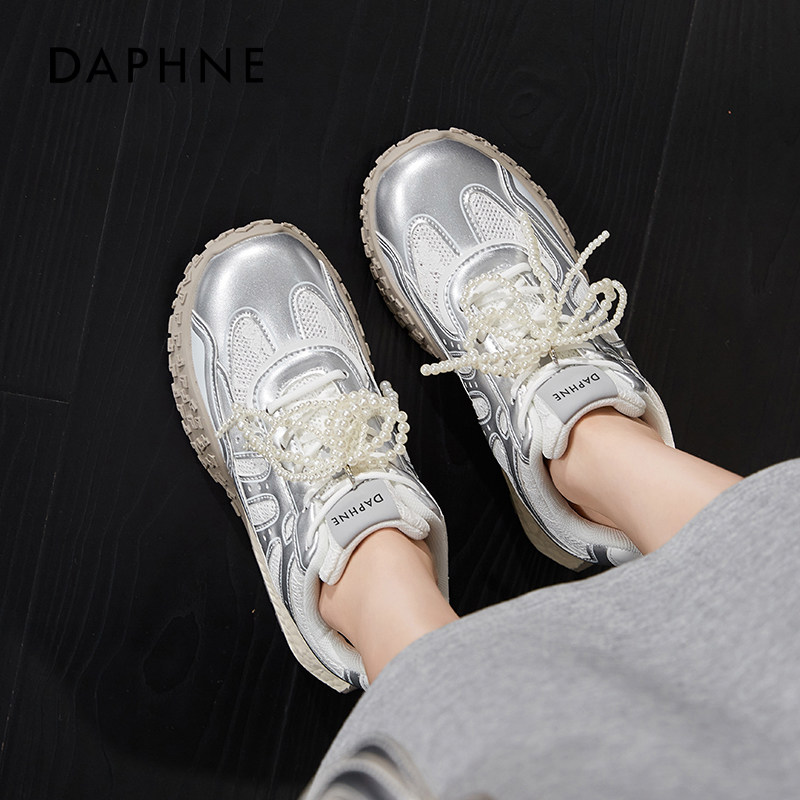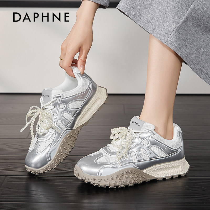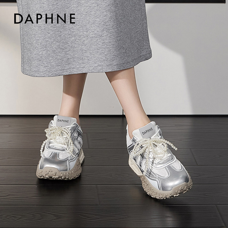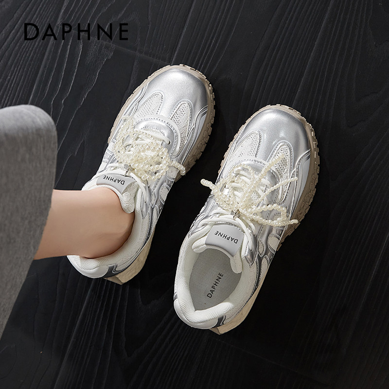 达芙妮银色厚底德训鞋女夏2026新款内增高串珠阿休闲甘老爹运动鞋