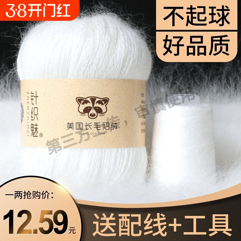真丝马海毛毛线手工编织长毛绒线细线披肩围巾线貂绒山羊绒配线小