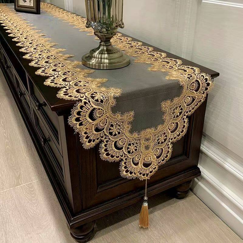 高级感工艺蕾丝桌旗美式茶几电视柜餐桌布欧式梳妆台桌旗鞋柜装饰