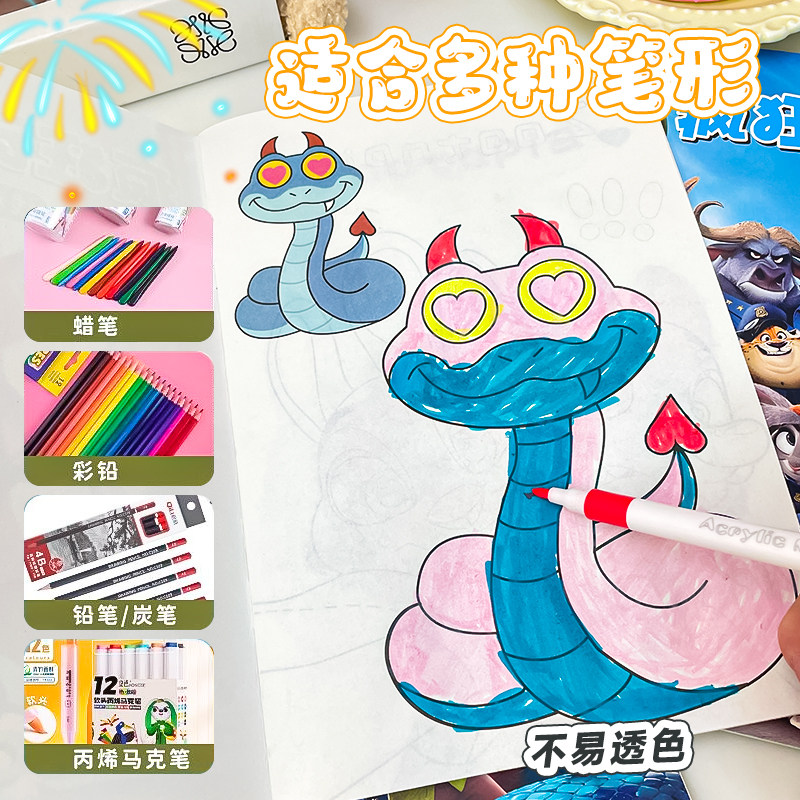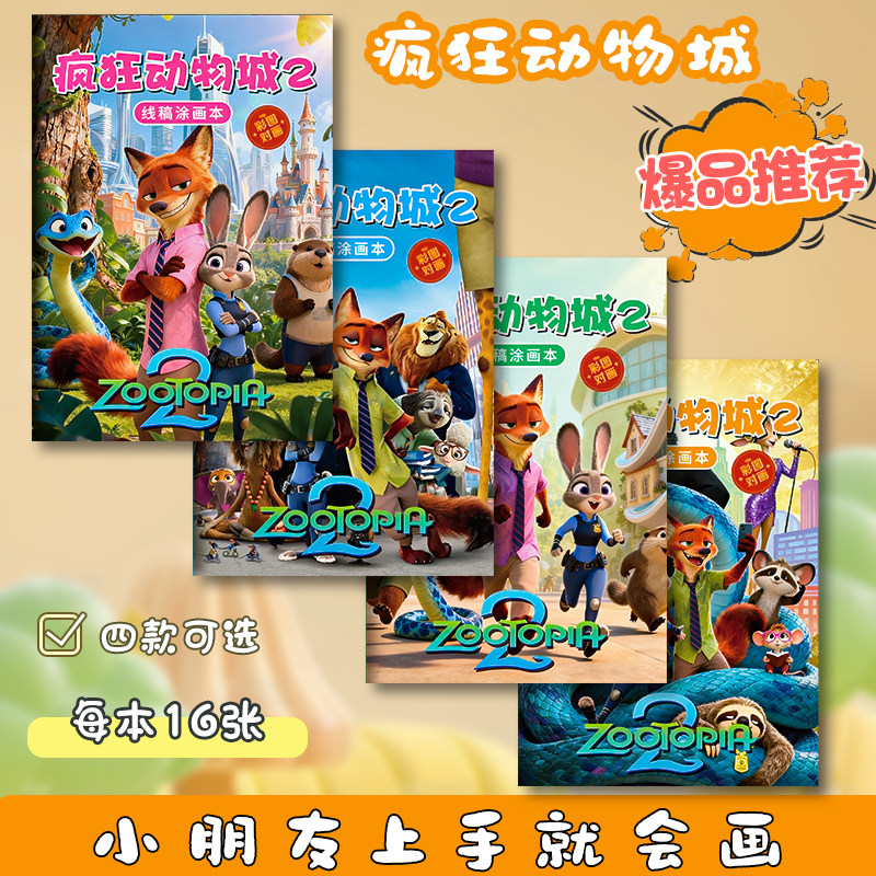 疯狂动物城2描摹本兔子警官朱迪尼克儿童动漫人物线稿画画本涂鸦涂色绘画本幼儿园小学生一年级专用图画本子