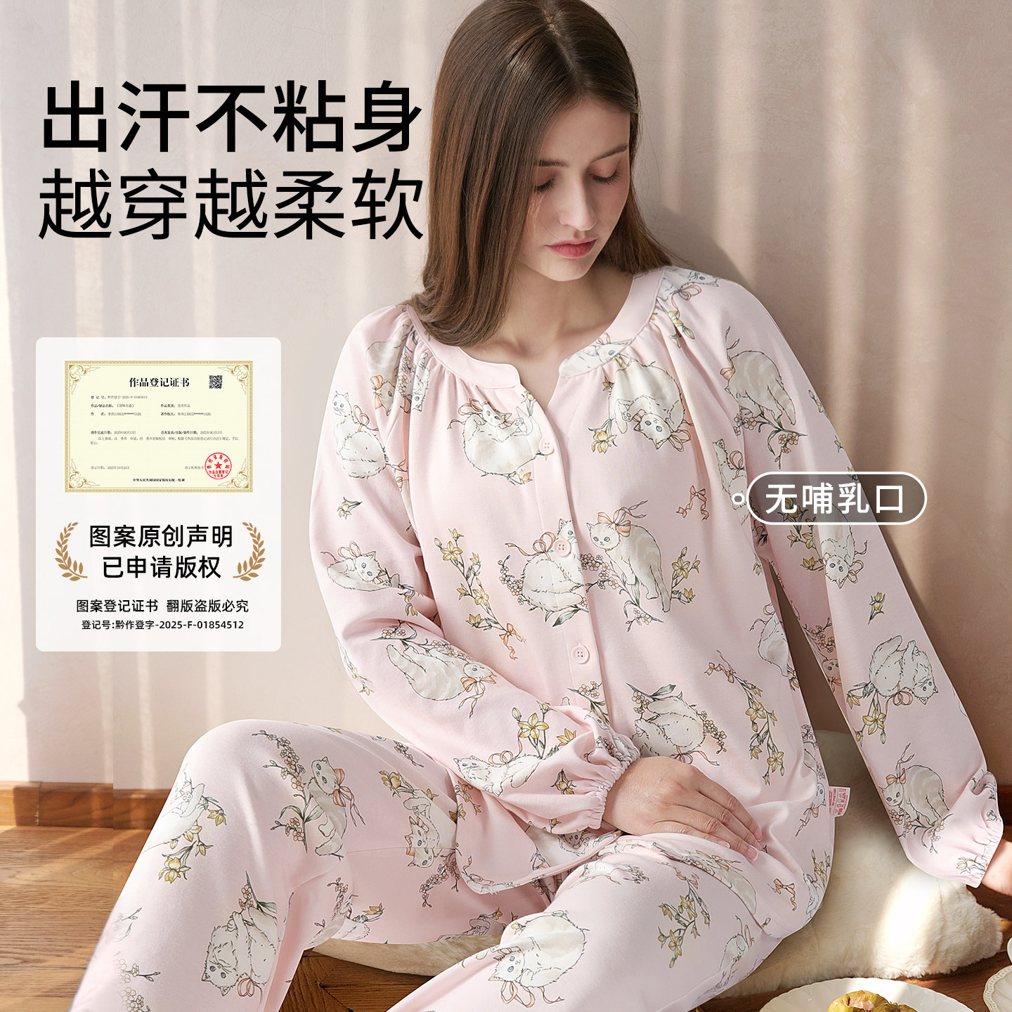 婧麒云慕丝月子服产后秋冬季纯哺乳家居服棉怀孕产妇孕妇睡衣套装