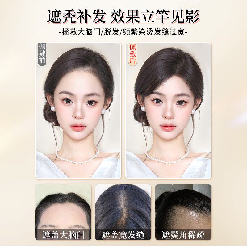刘海假发女片头顶补发真发遮白发前额颅顶无痕量遮盖发际线人发