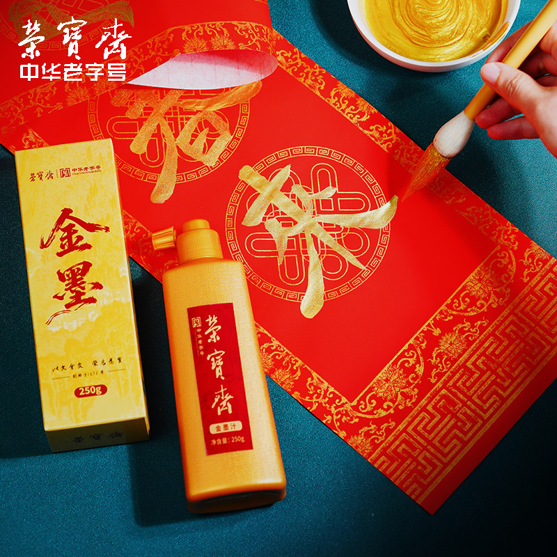 荣宝斋金色墨汁小楷文房四宝书法国画金粉对联春联专用墨水大容量金墨墨液